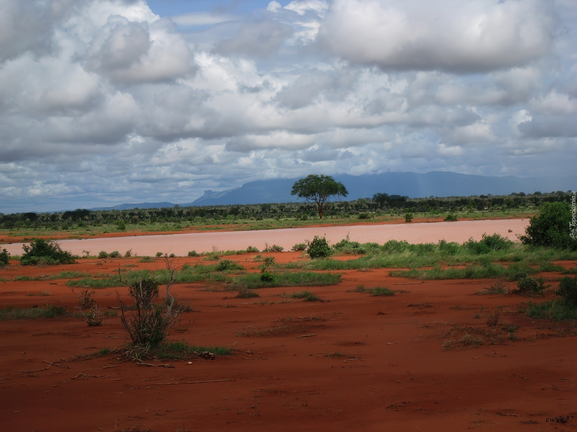 Edytor tapety: Afryka, Kenia, Pustynia, Drzewo, Niebo, Rośliny