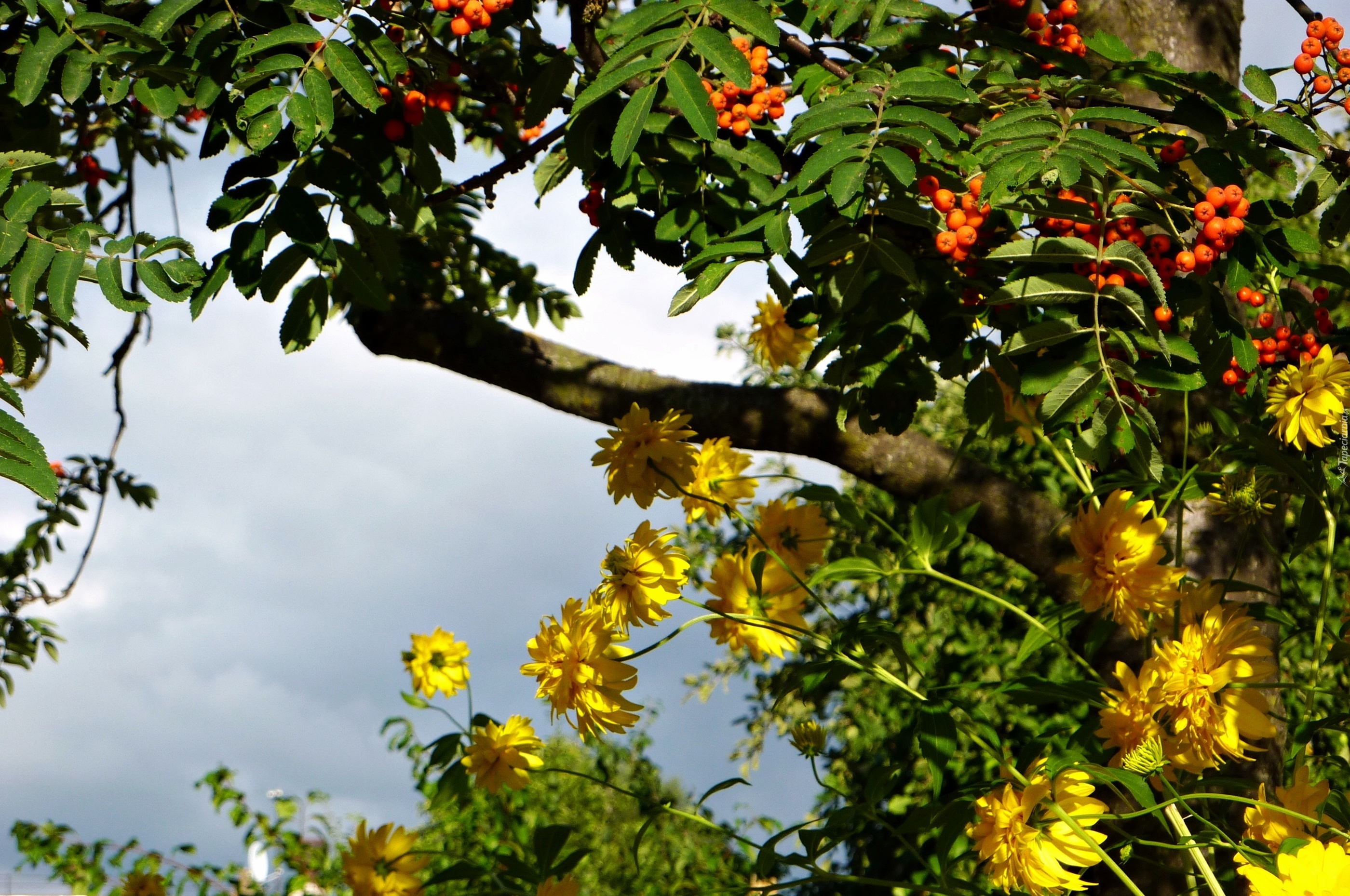 Edytor tapety: Owocująca, Jarzębina, Żółte, Kwiaty