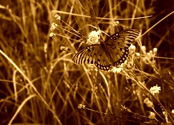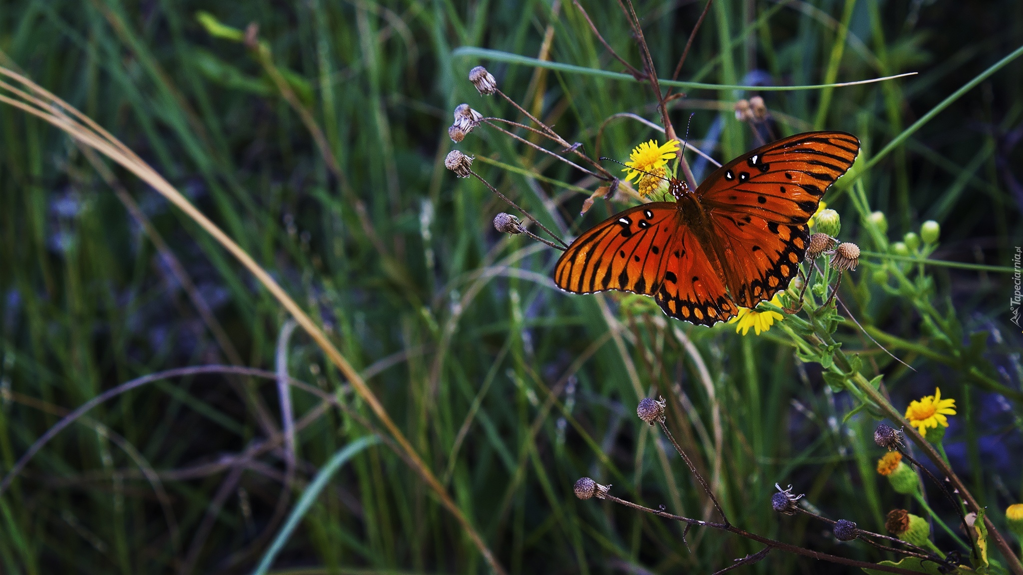Edytor tapety: Łąka, Mlecze, Kolorowy, Motyl