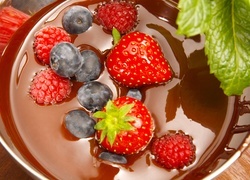 Edytor tapety: Truskawki, Jagody, Maliny, Czekolada, Deser