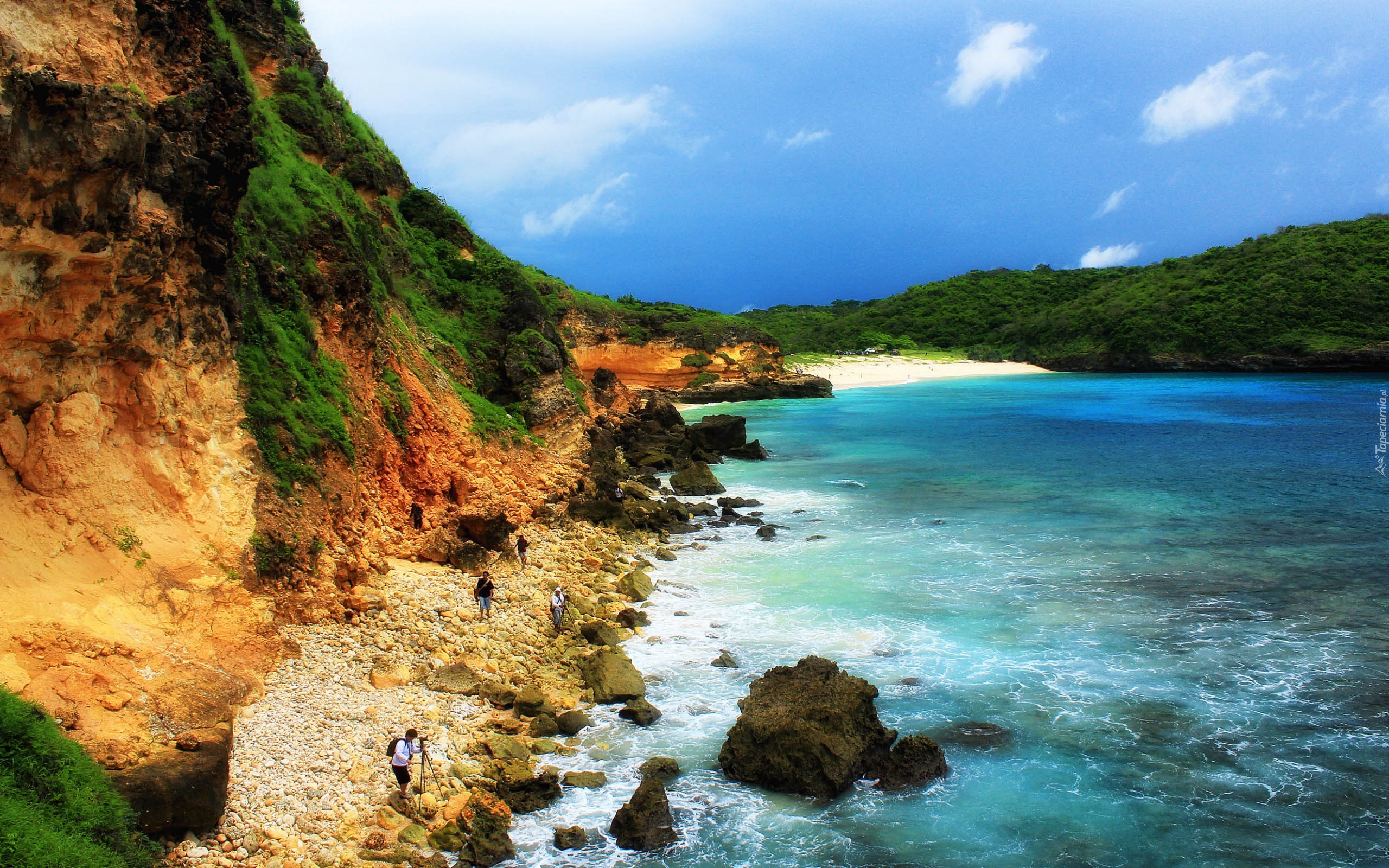 Edytor tapety: Indonezja, Skarpa, Morze, Kamienie, Lasy, Turyści