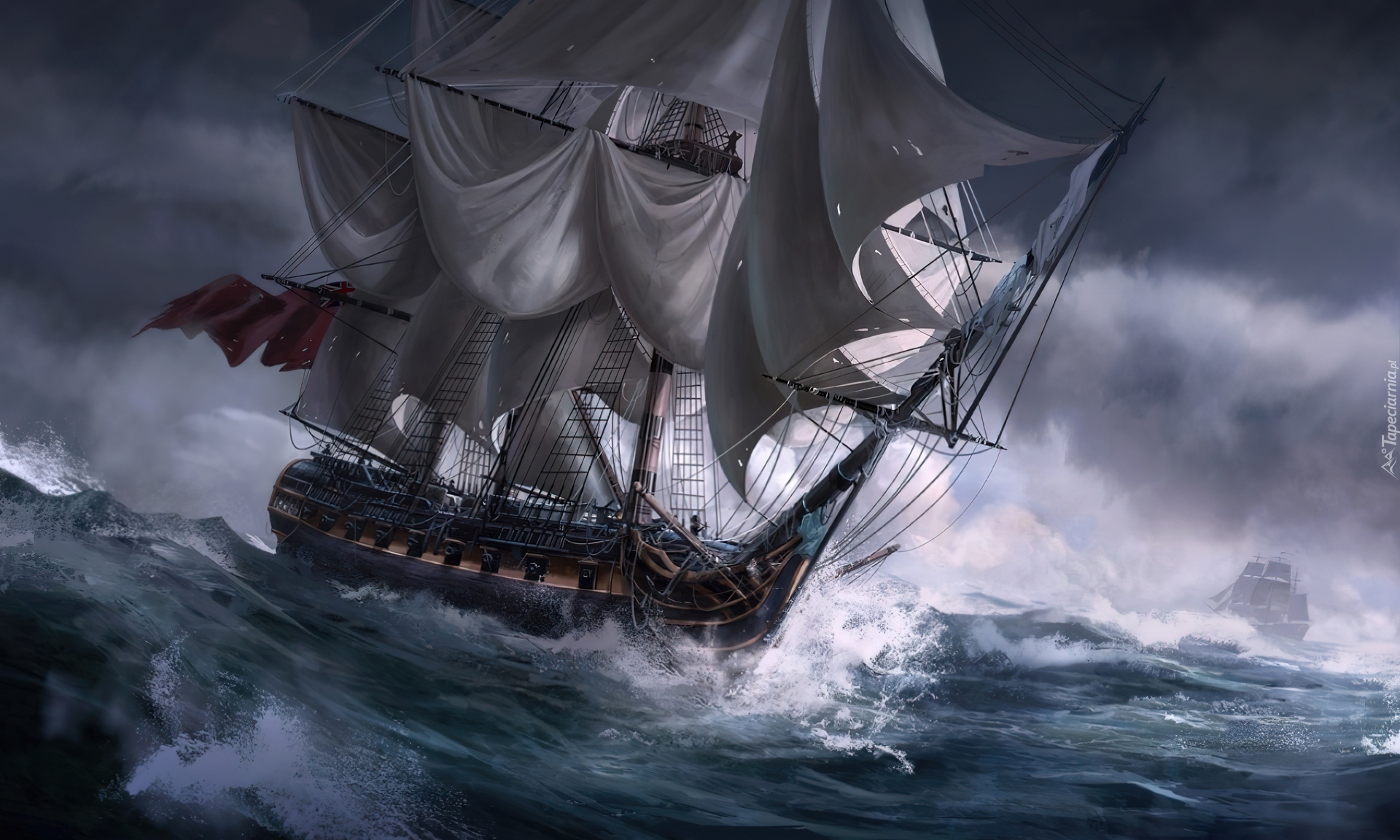 Edytor tapety: Żaglowiec, Morze, Burza