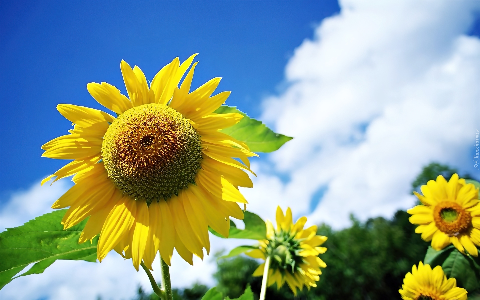 Edytor tapety: Słoneczniki, Na Tle, Nieba