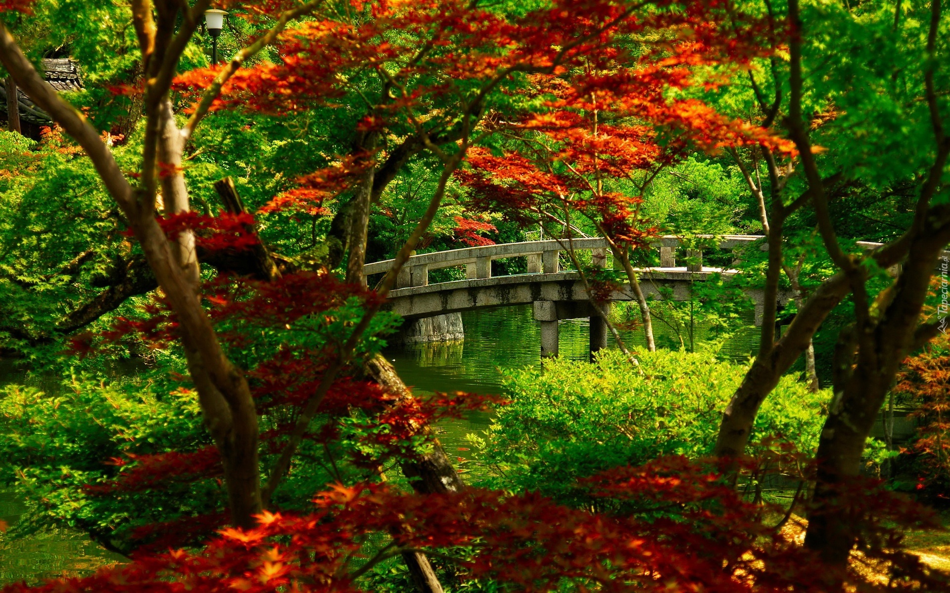 Edytor tapety: Japoński, Ogród, Most, Rzeczka