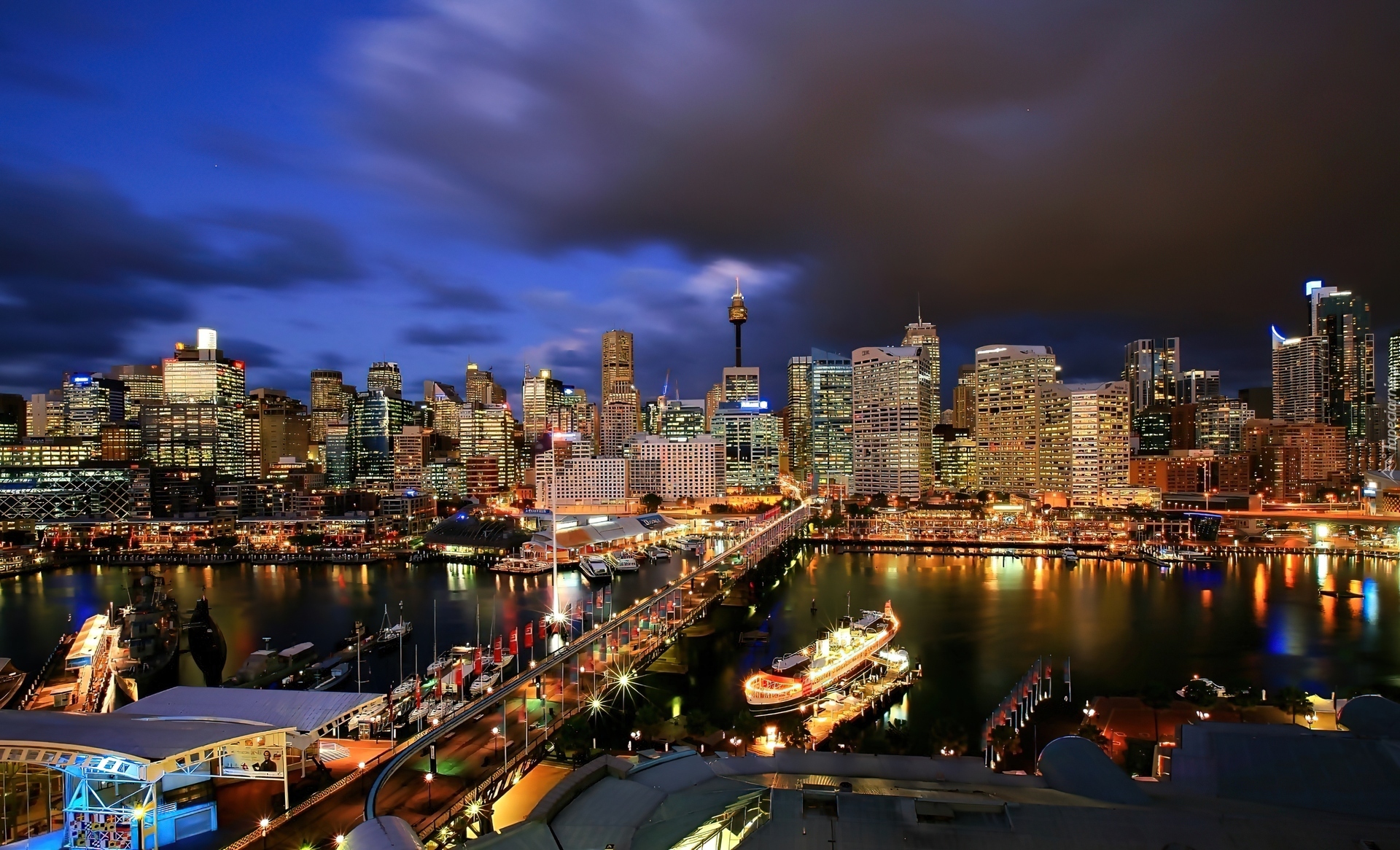 Edytor tapety: Panorama, Sydney, Rzeka, Most, Statek