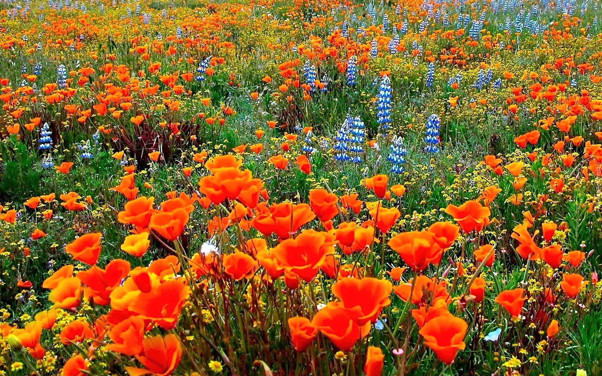 Edytor tapety: Łąka, Pozłotka kalifornijska, Łubin