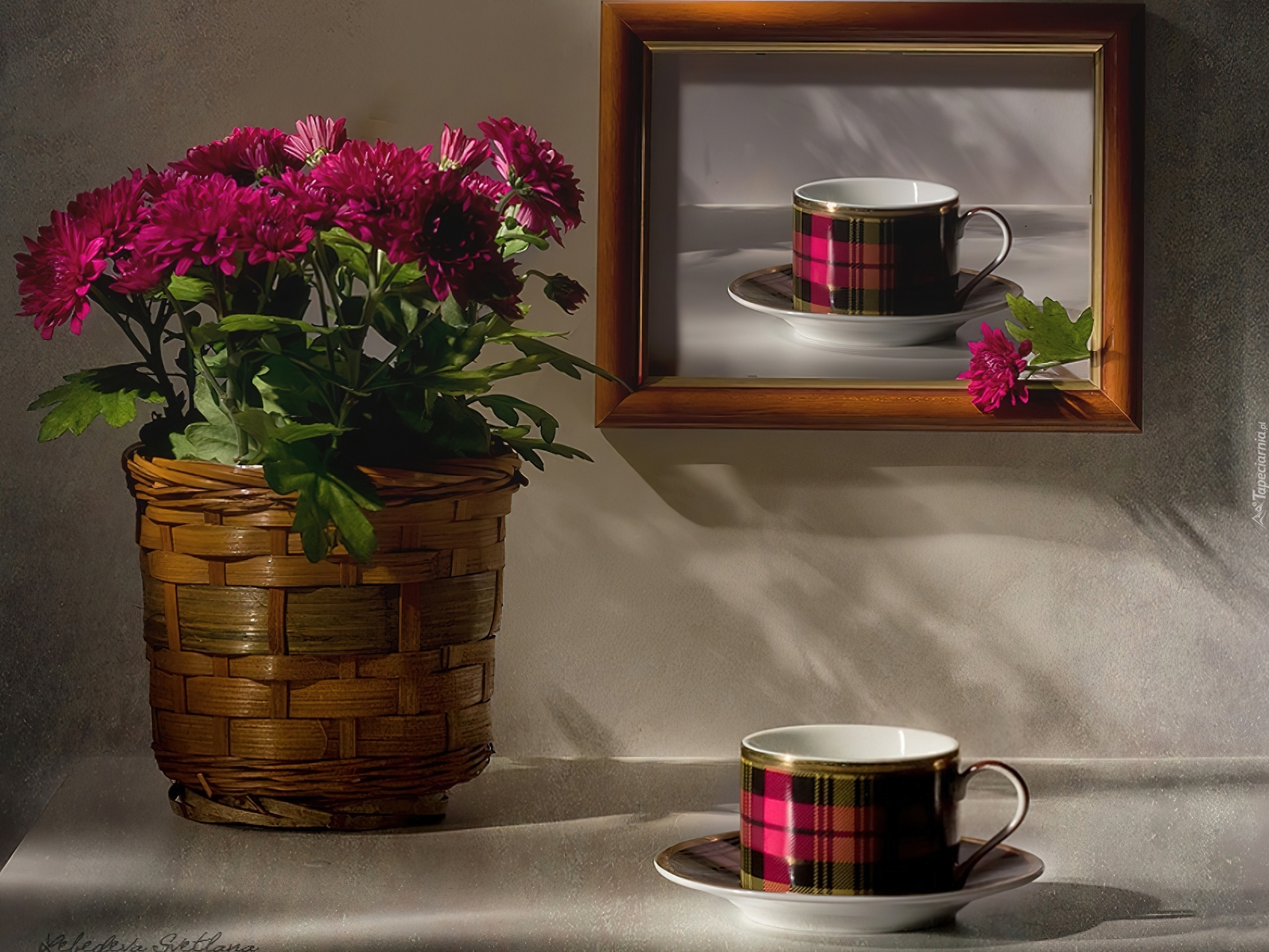 Edytor tapety: Kwiaty, Obraz, Filiżanka, Talerzyk