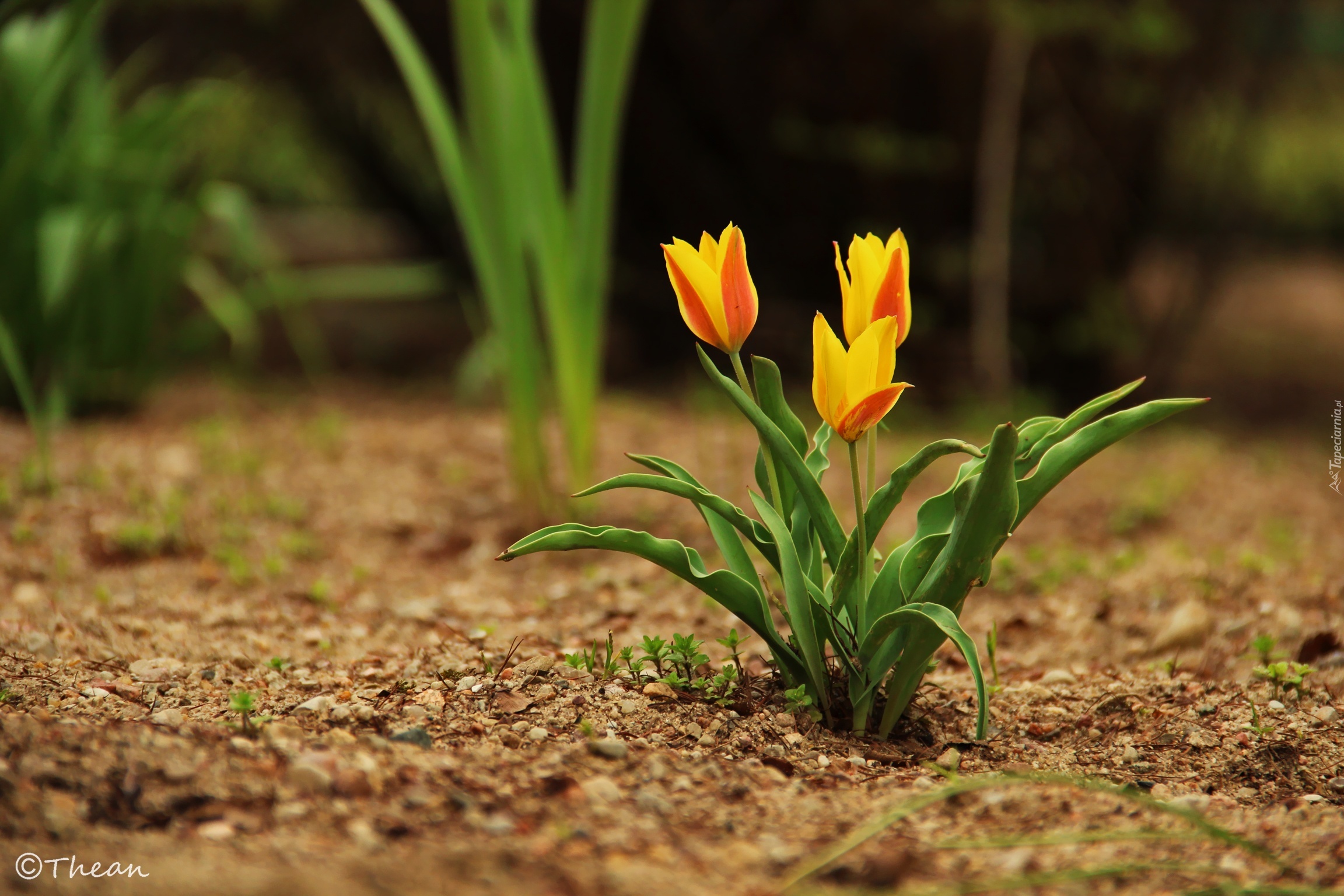 Edytor tapety: Trzy, Tulipany, Zółte, Pomarańczowe