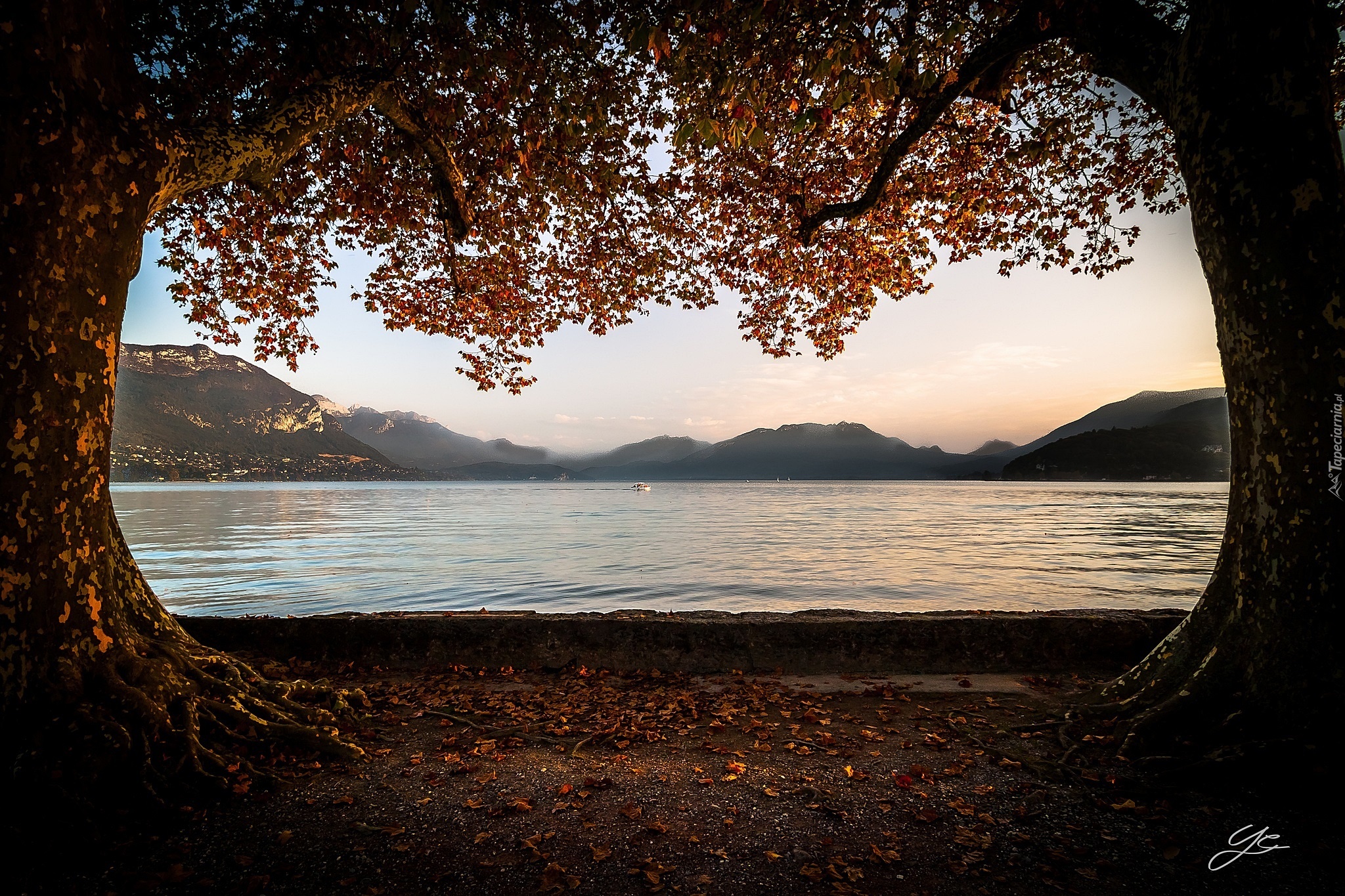 Edytor tapety: Góry, Jezioro, Drzewa, Jesień