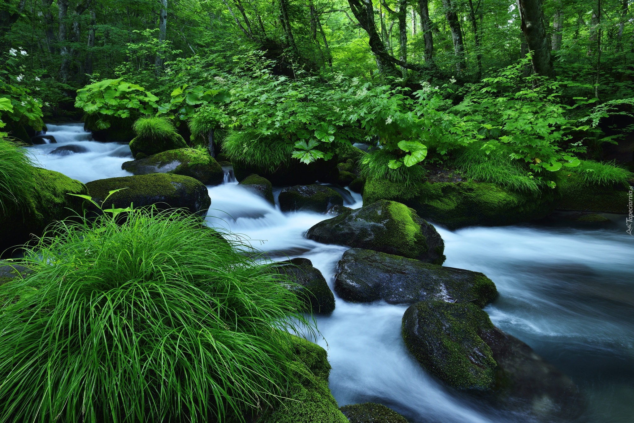 Edytor tapety: Las, Zieleń, Rzeka, Kamienie