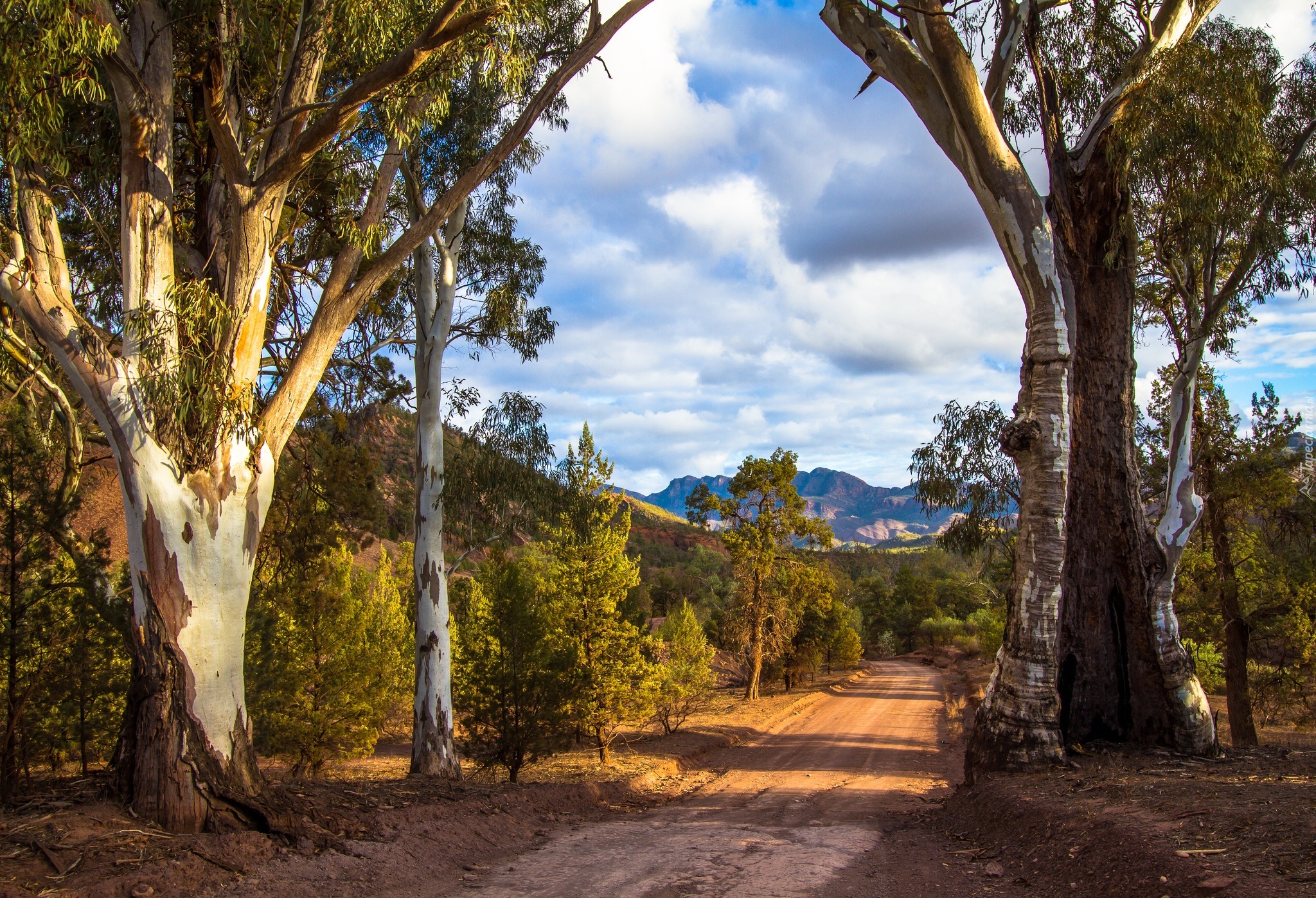 Edytor tapety: Góry, Drzewa, Droga