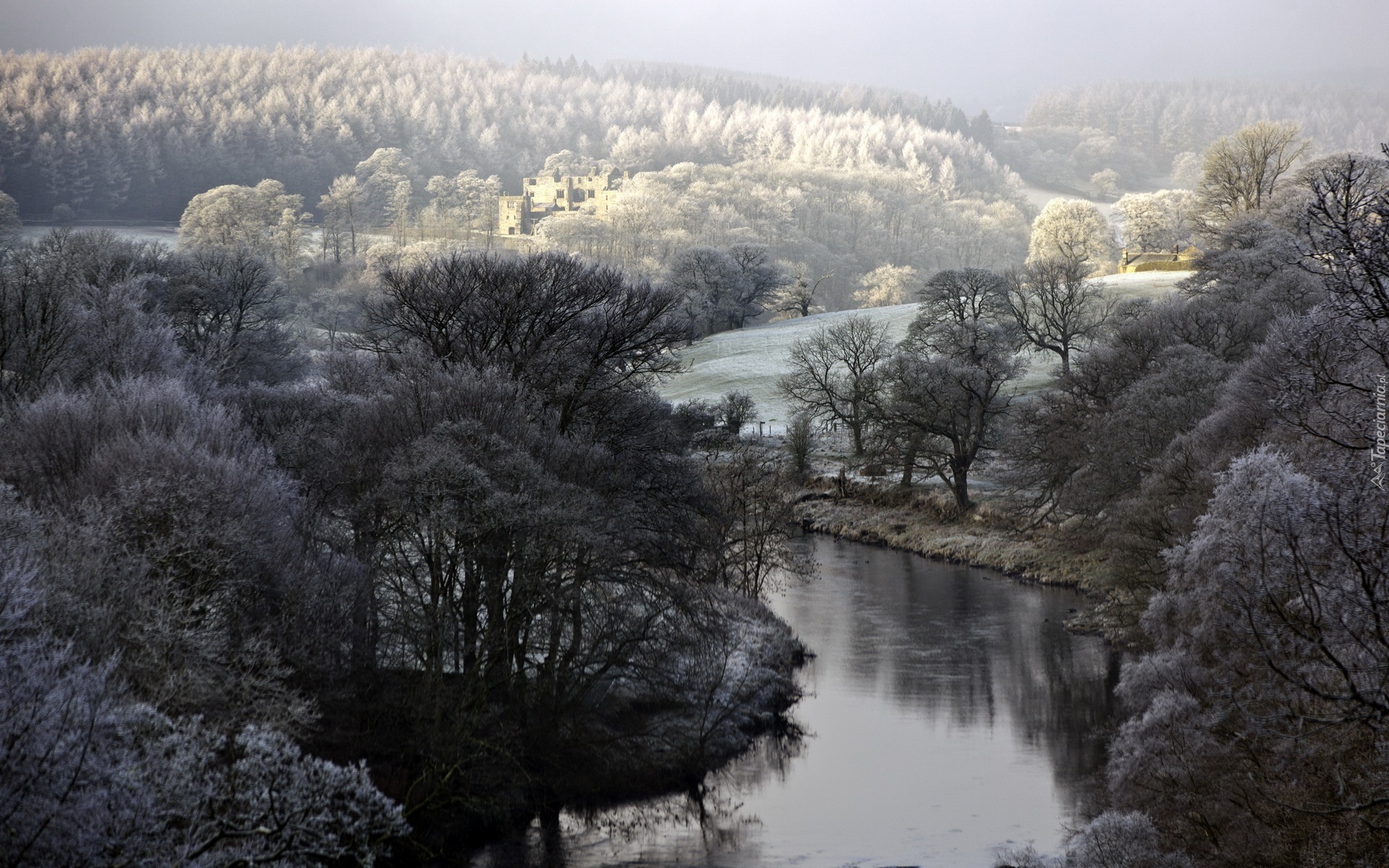Edytor tapety: Rzeka, Lasy, Pola, Zima