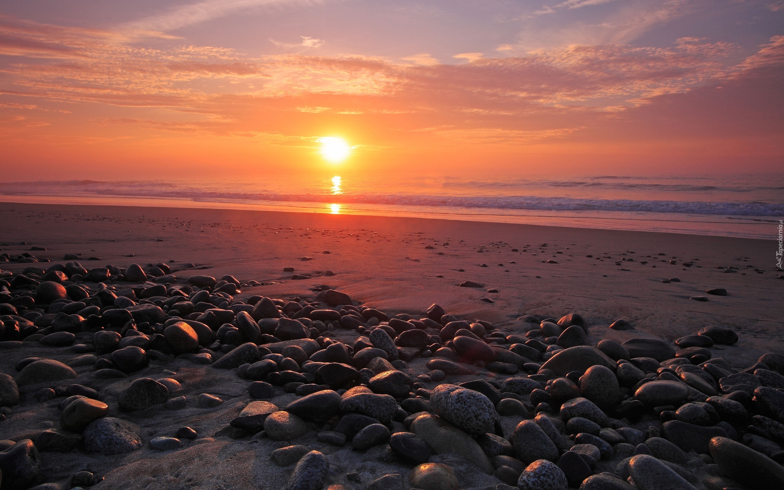 Edytor tapety: Plaża, Morze, Kamienie, Zachód, Słońca