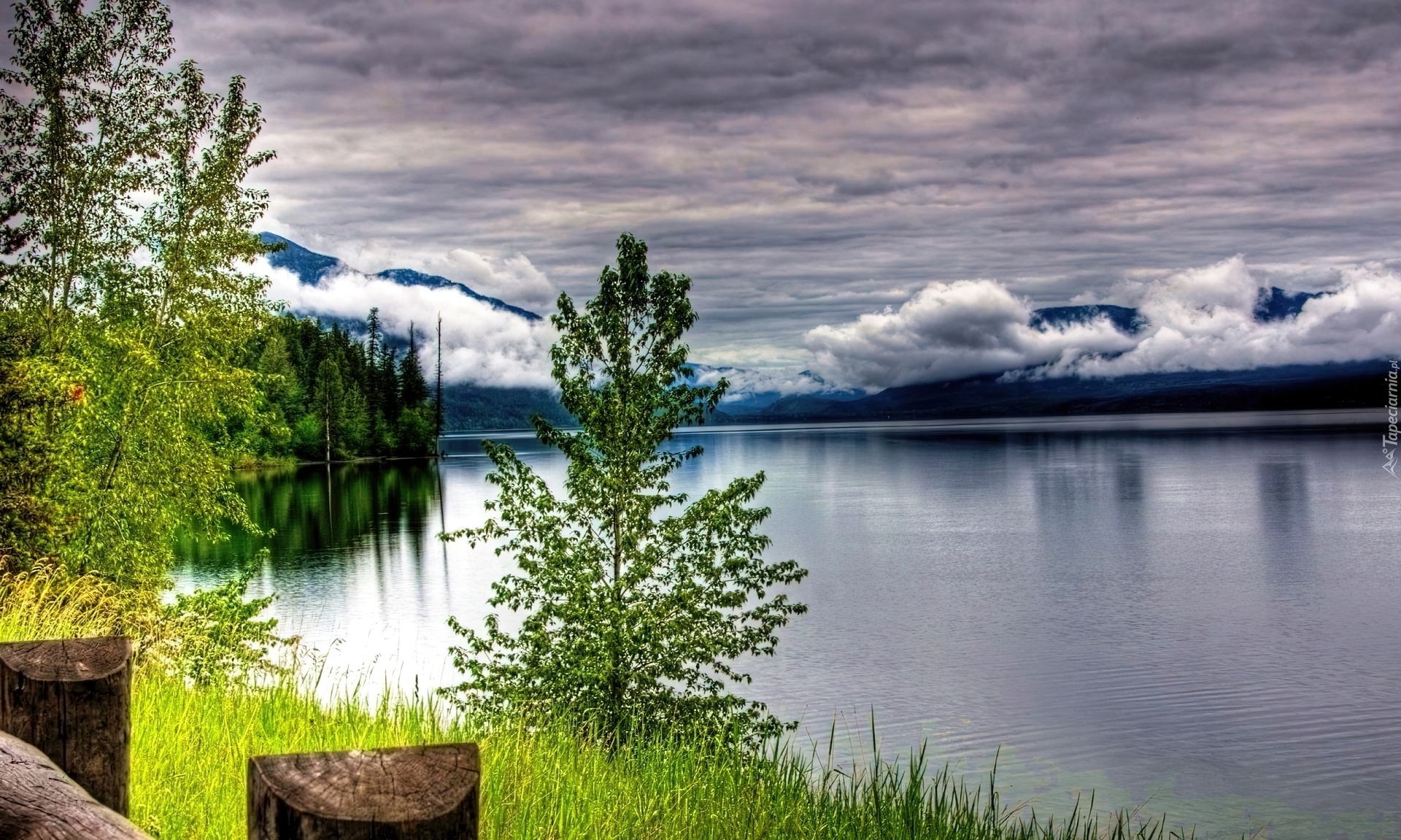Edytor tapety: Jezioro, Chmury, Drzewa