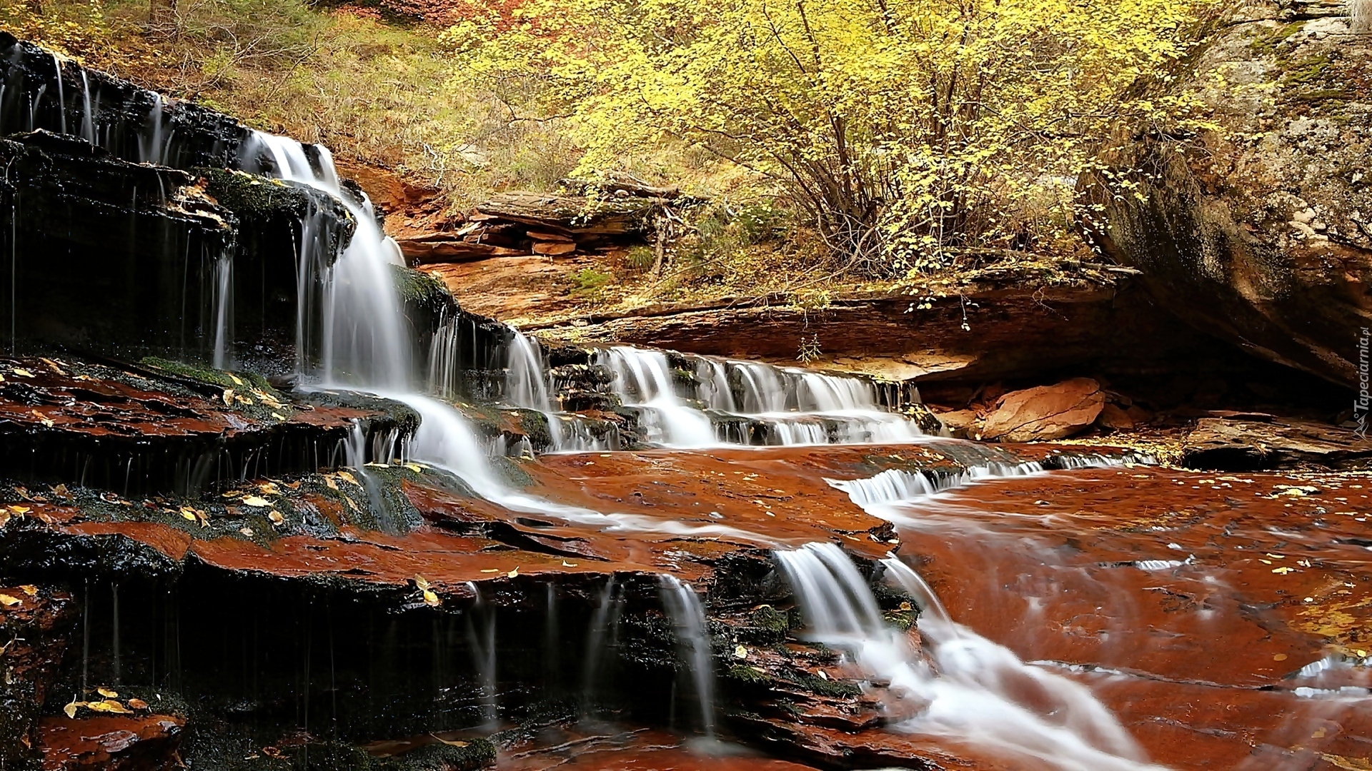 Edytor tapety: Las, Kaskada, Opadłe, Liście