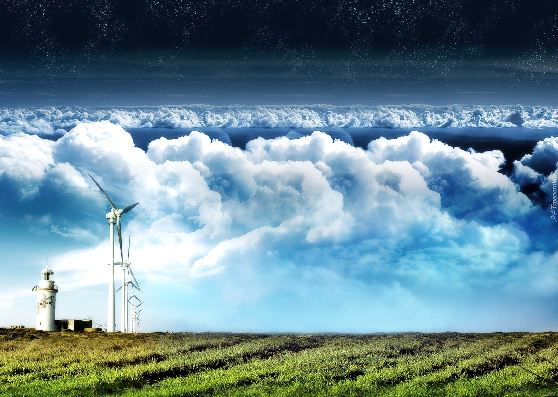 Edytor tapety: Wiatraki, Chmury, Niebo