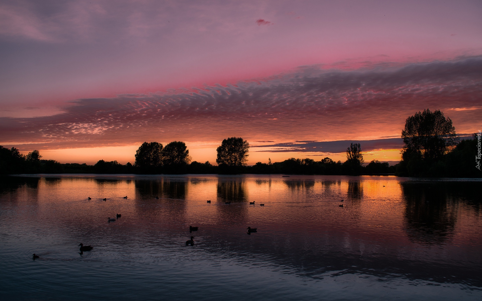 Edytor tapety: Jezioro, Kaczki, Zachód, Słońca