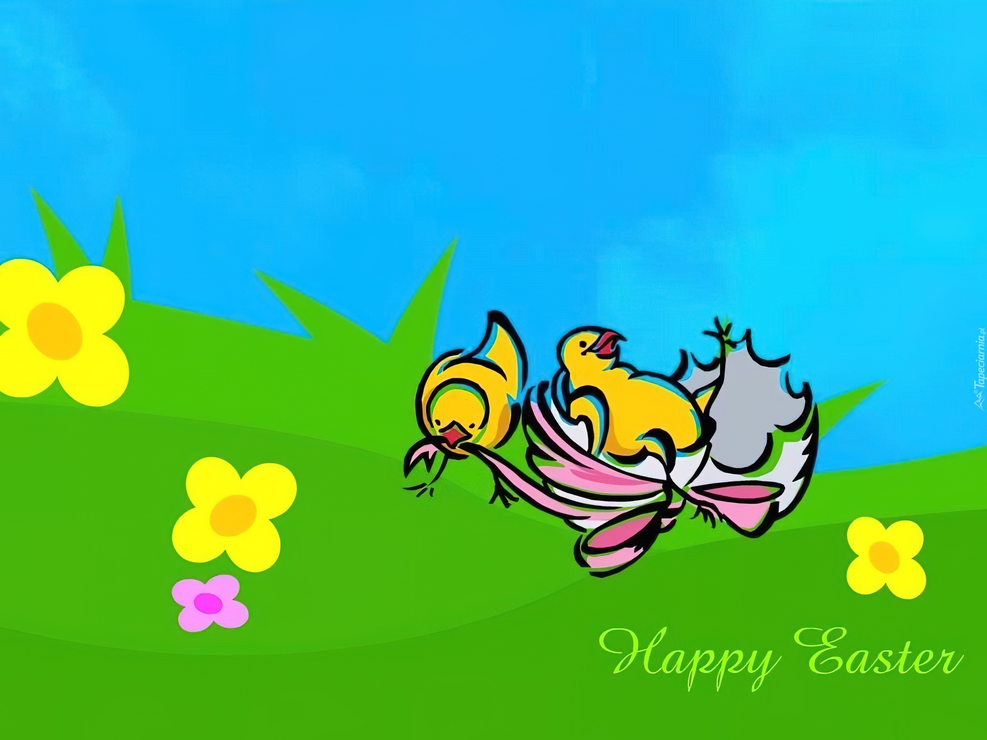 Edytor tapety: Wielkanoc,kurczaczek , kwiatki