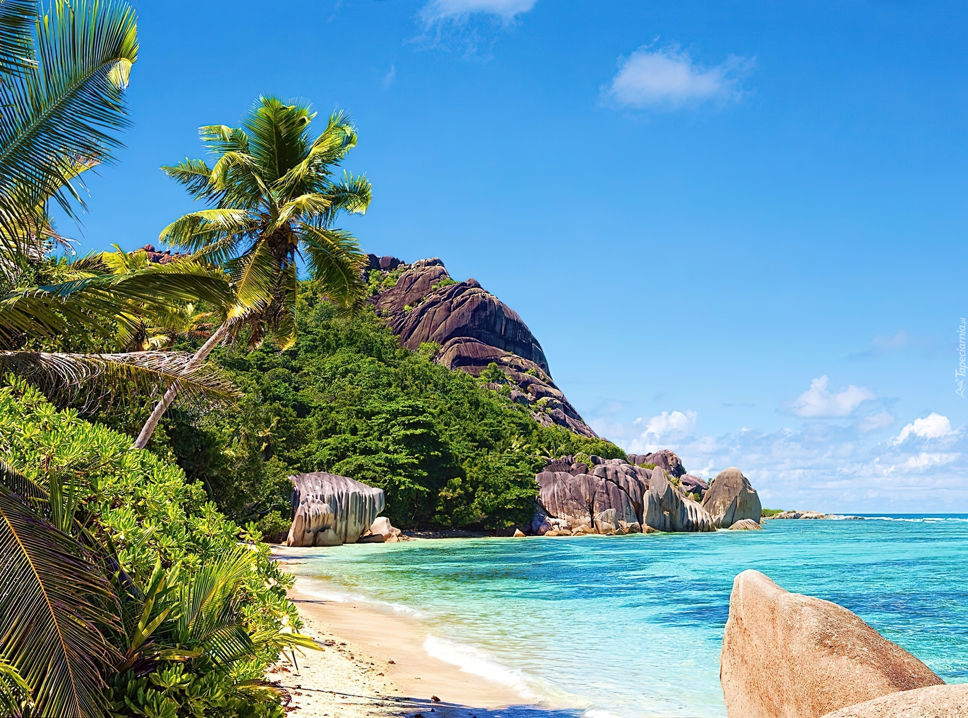 Edytor tapety: Ocean, Plaża, Skały, Seszele