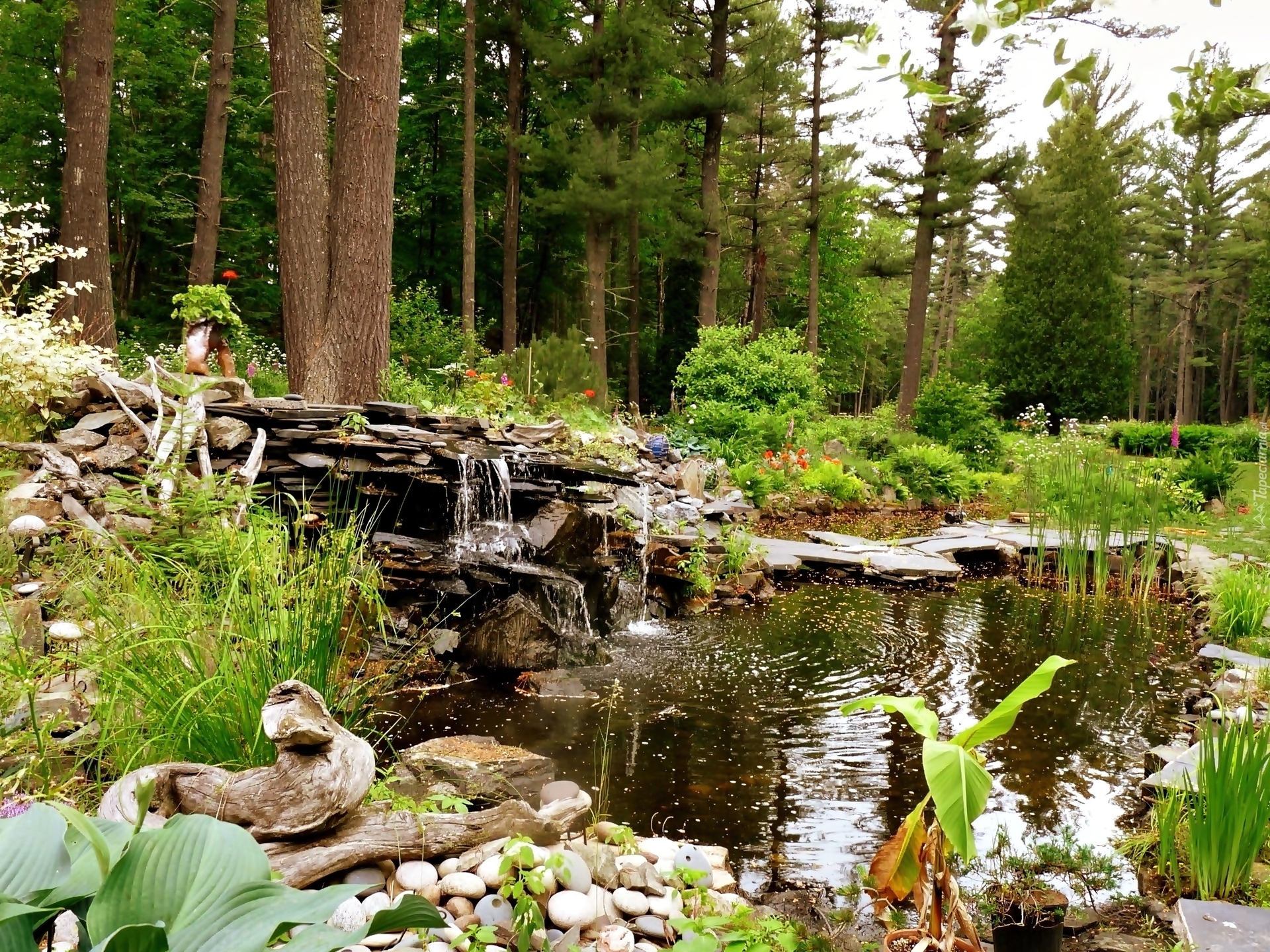 Edytor tapety: Leśny, Ogród, Skałki, Kamienie, Kaskada, Staw