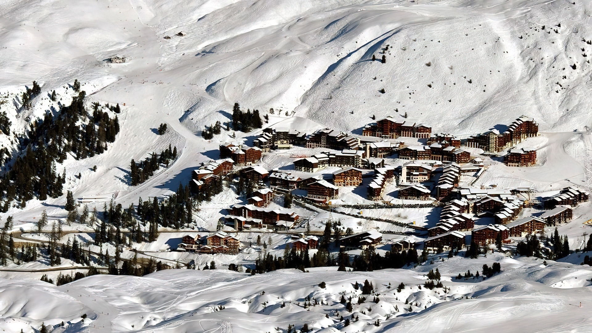 Edytor tapety: Góry, Alpy, Miasto, Śnieg, Francja