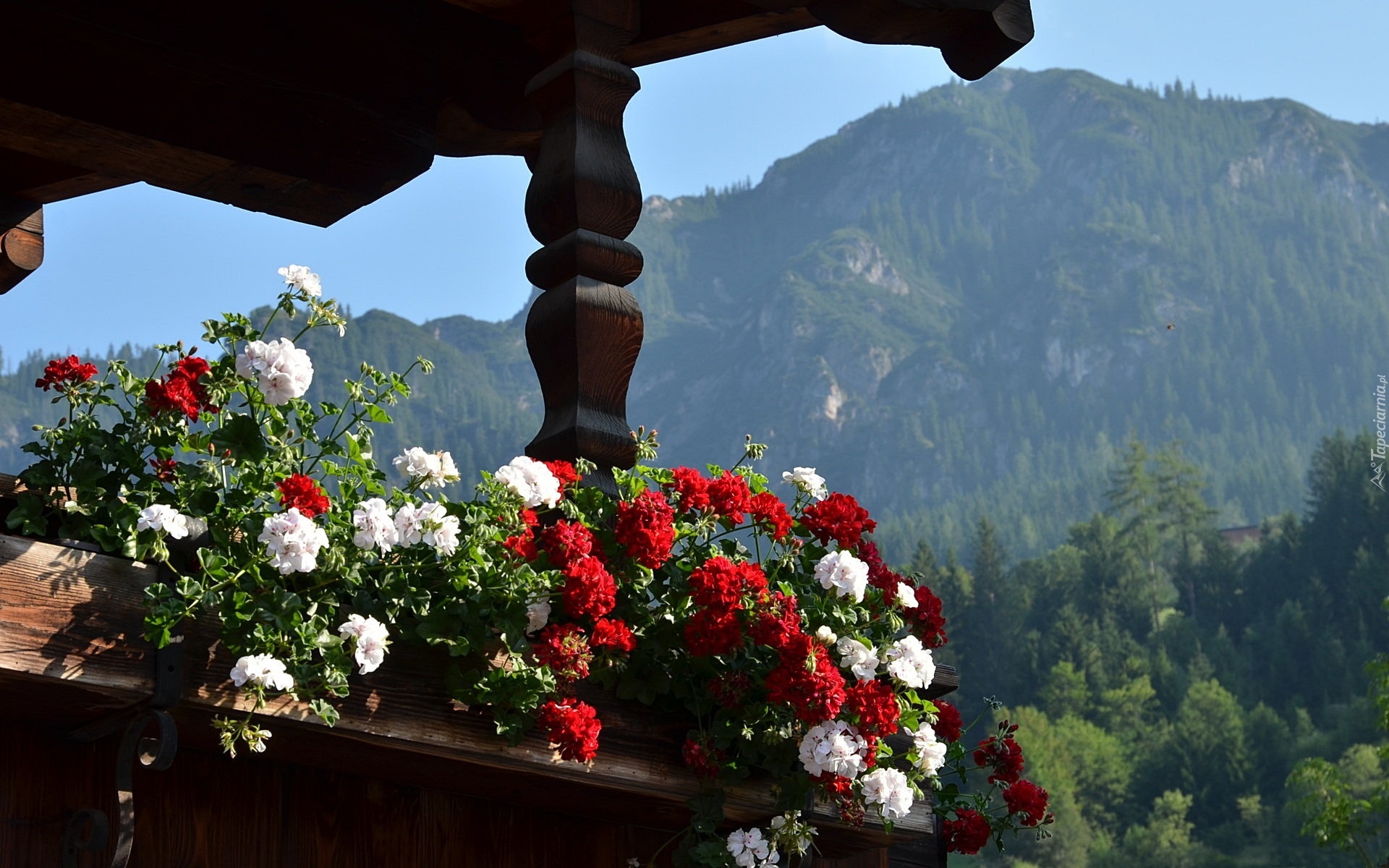 Edytor tapety: Pelargonie, Taras, Góry Alpy, Austria