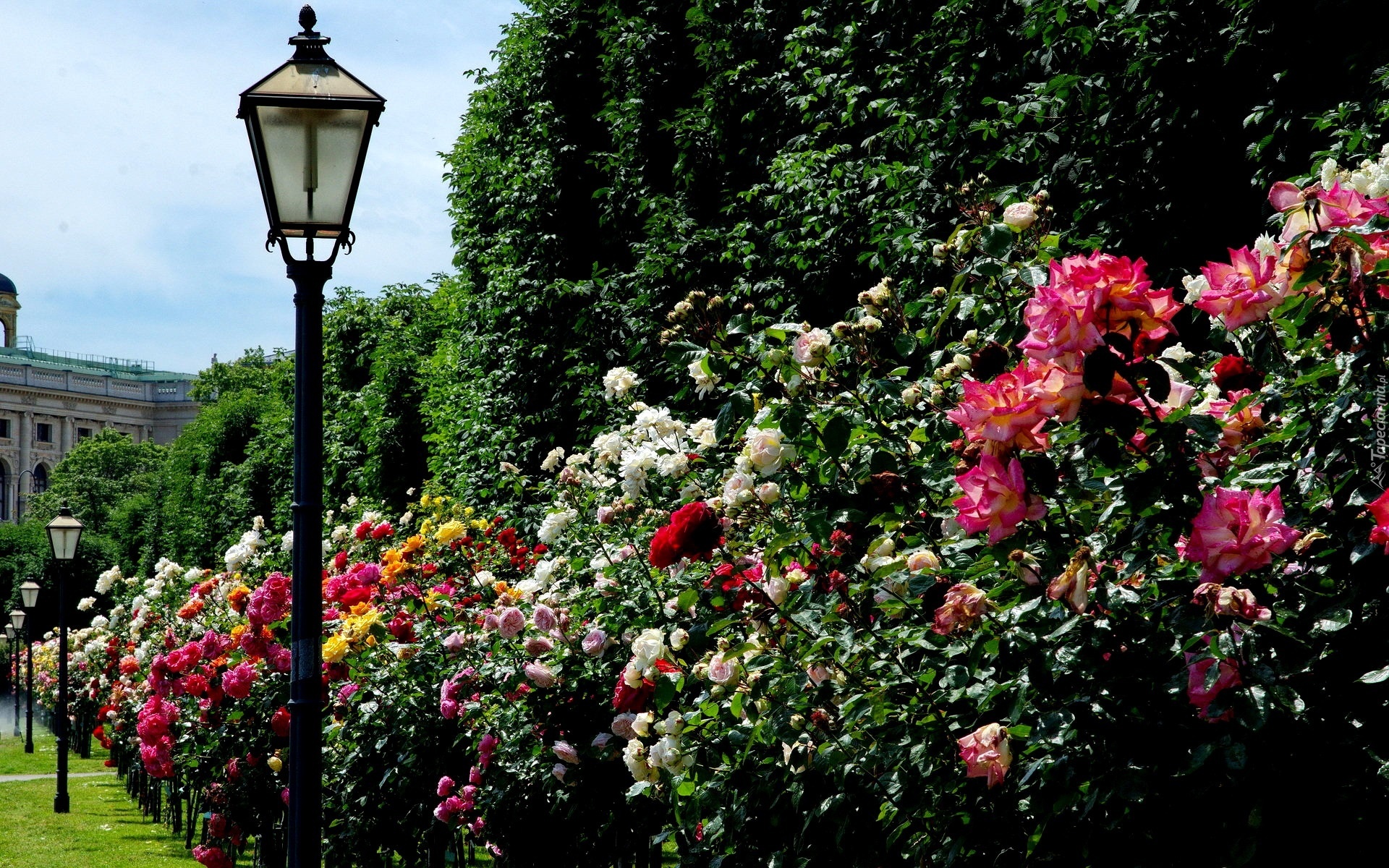 Edytor tapety: Park, Aleja, Róż, Latarnia