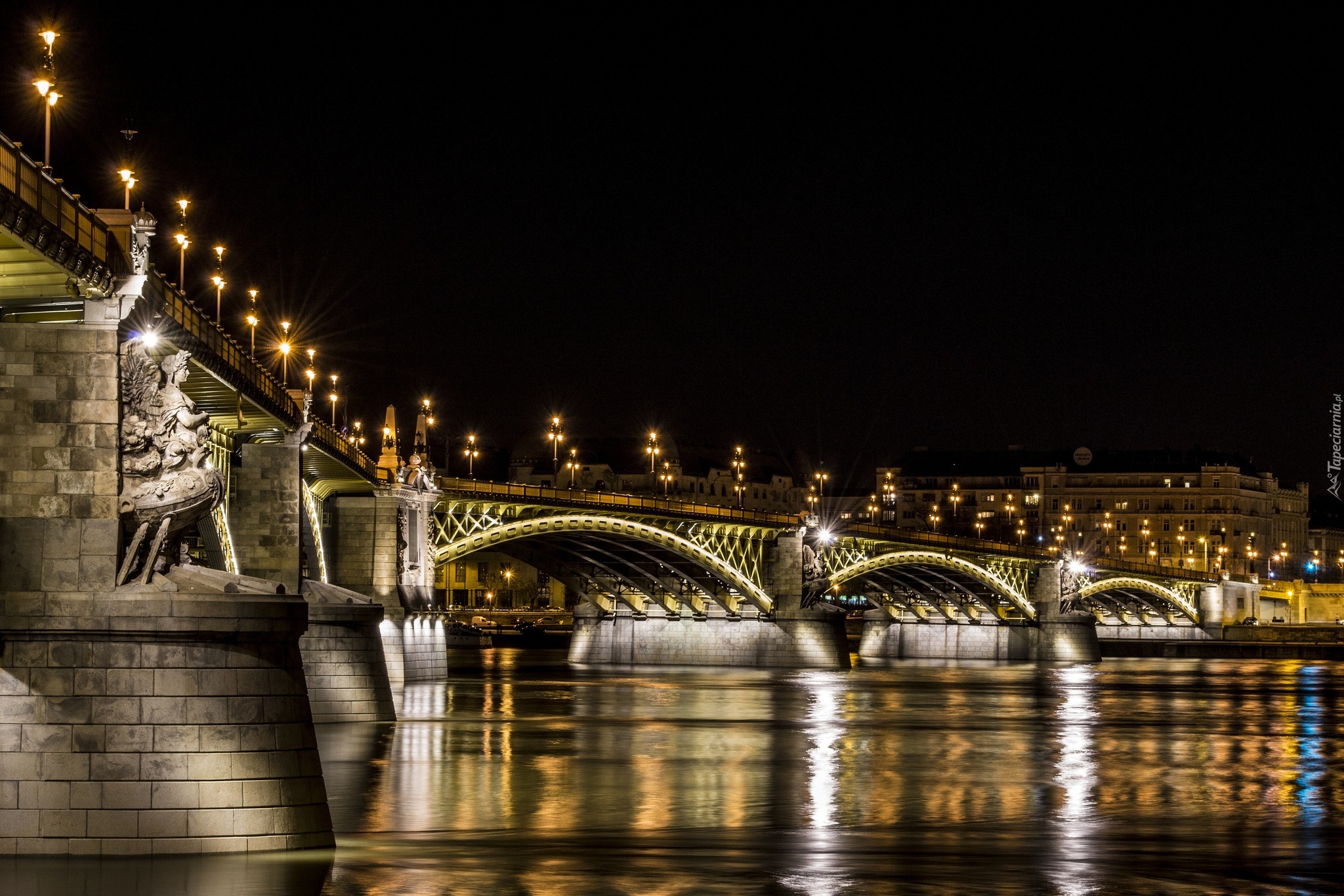 Edytor tapety: Oświetlony, Most, Rzeka Dunaj, Budapeszt, Węgry