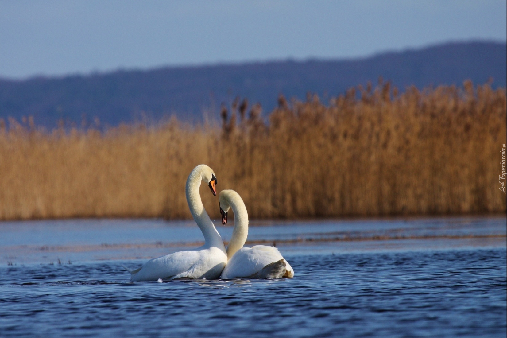 Edytor tapety: Zakochane, Łabędzie, Jezioro, Trzcina
