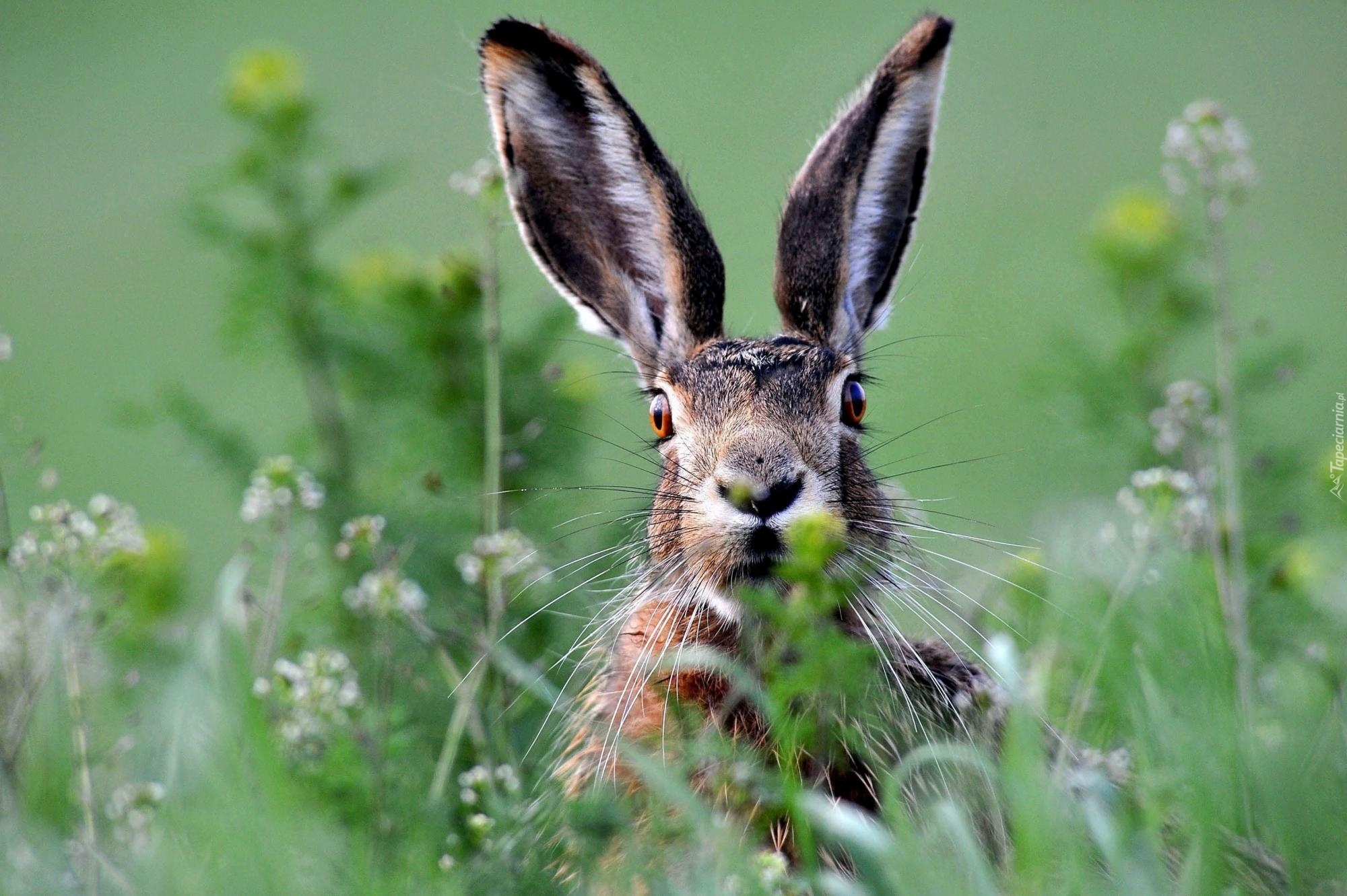 Edytor tapety: Wystraszony, Zając, Stojące, Uszy
