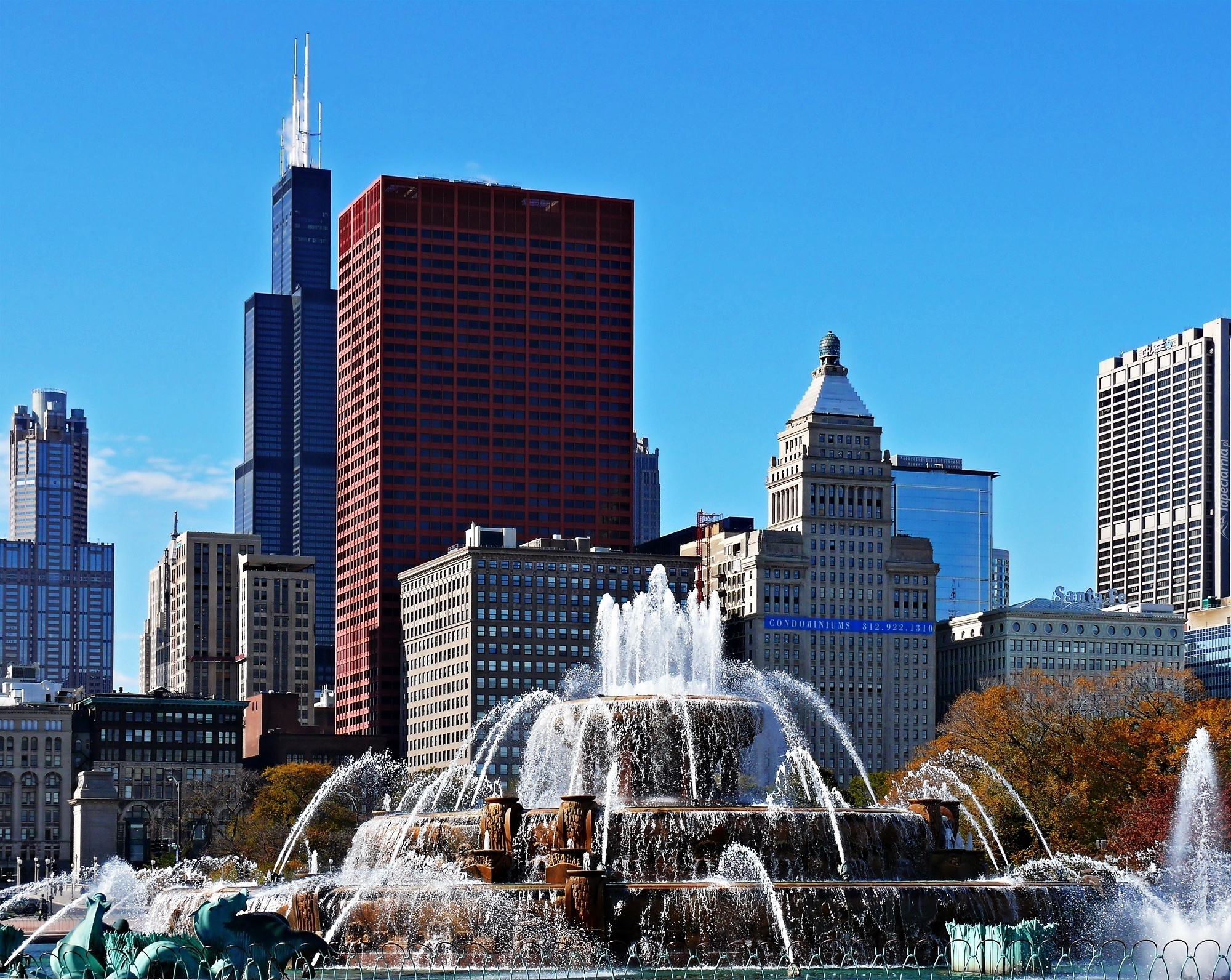 Edytor tapety: Chicago, Drapacze, Chmur, Fontanna