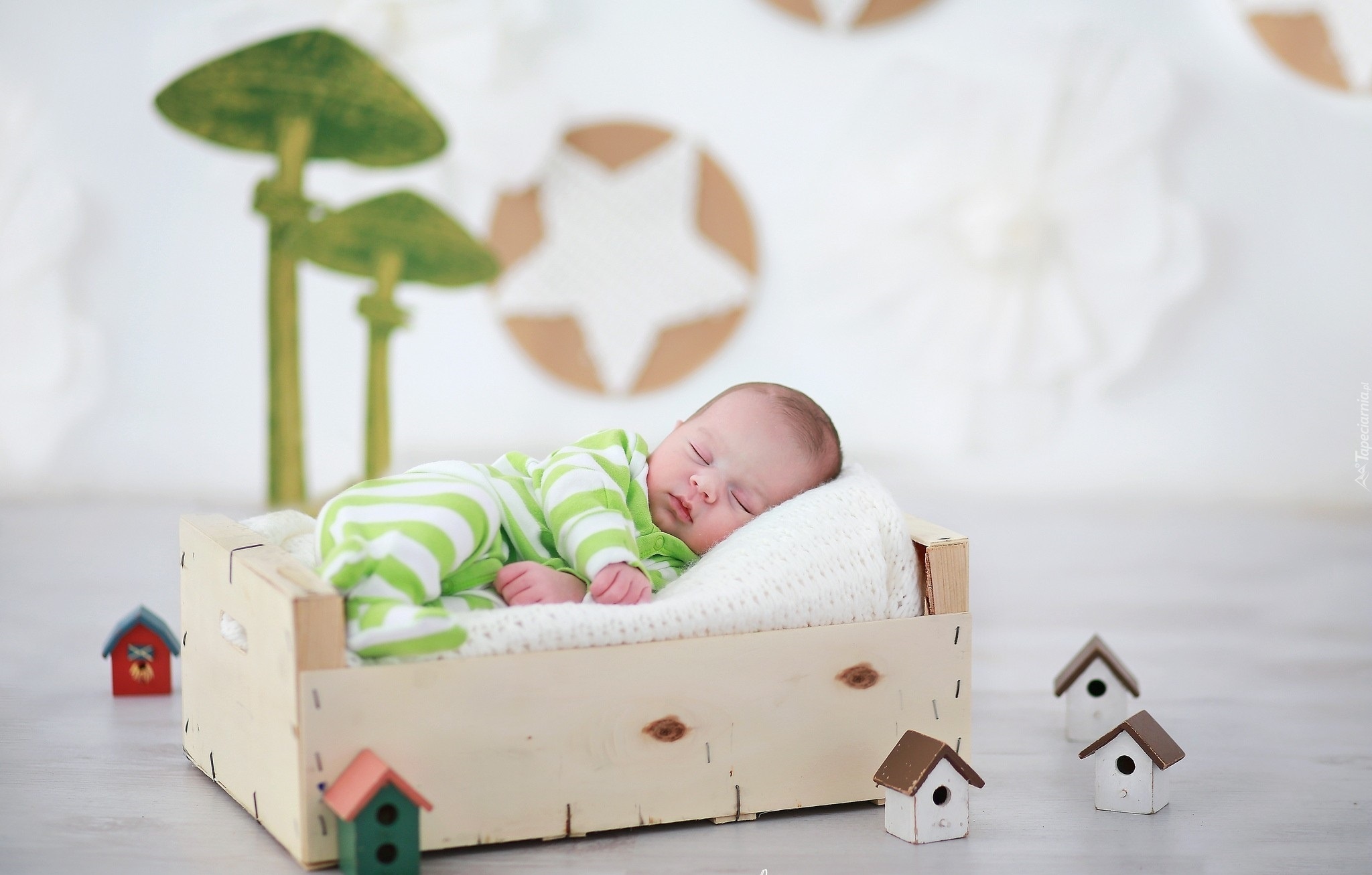 Edytor tapety: Śpiące, Niemowle, Skrzynia, Domki