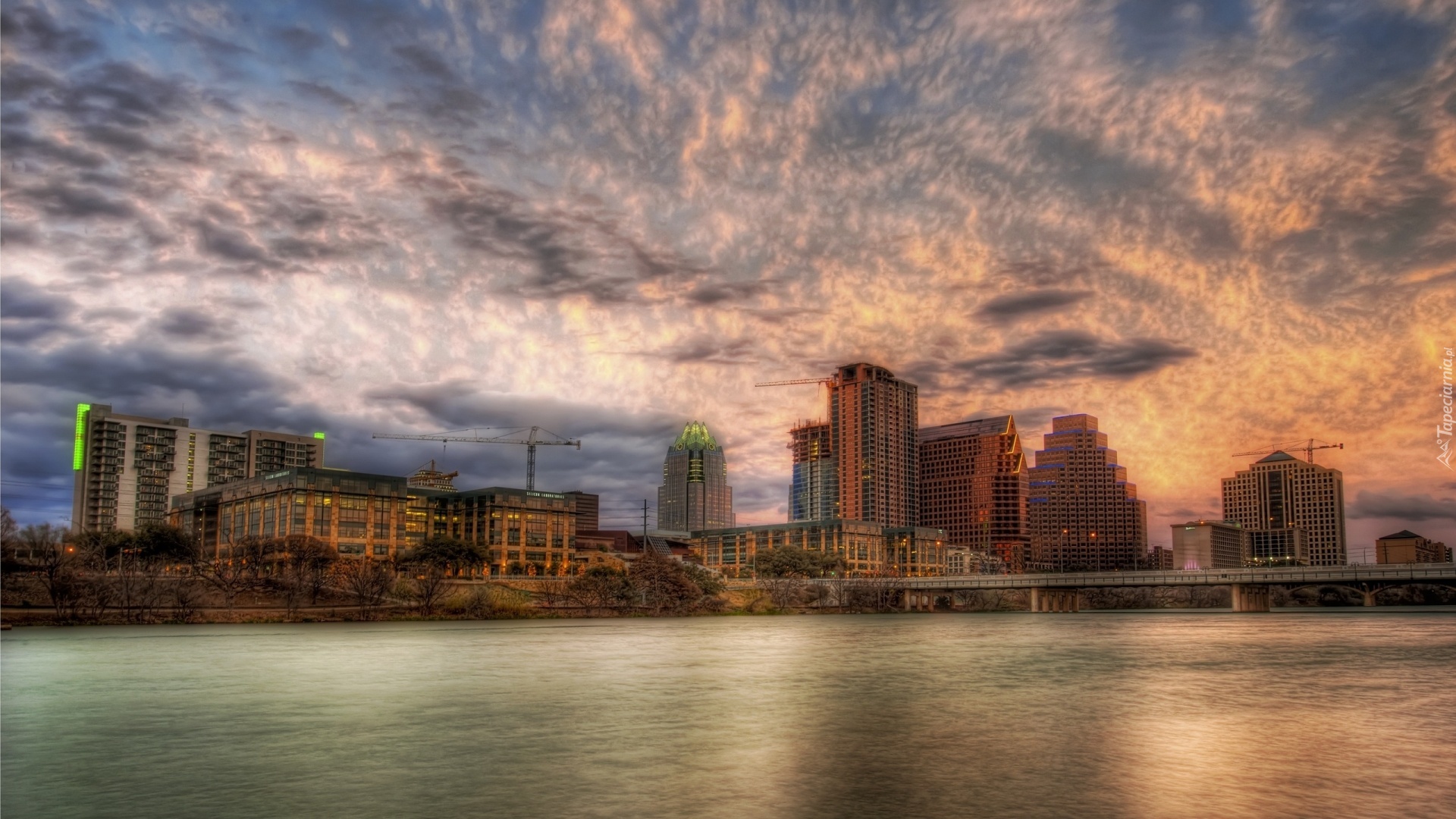 Edytor tapety: Rzeka, Chmury, Domy, Austin, Teksas