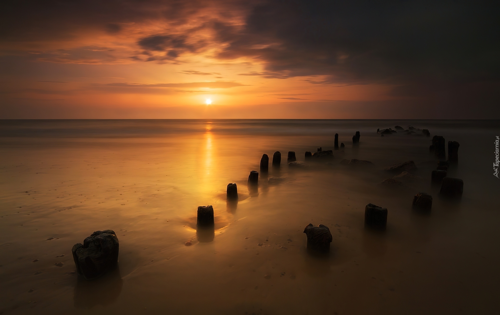 Edytor tapety: Zachód, Słonca, Morze, Falochron