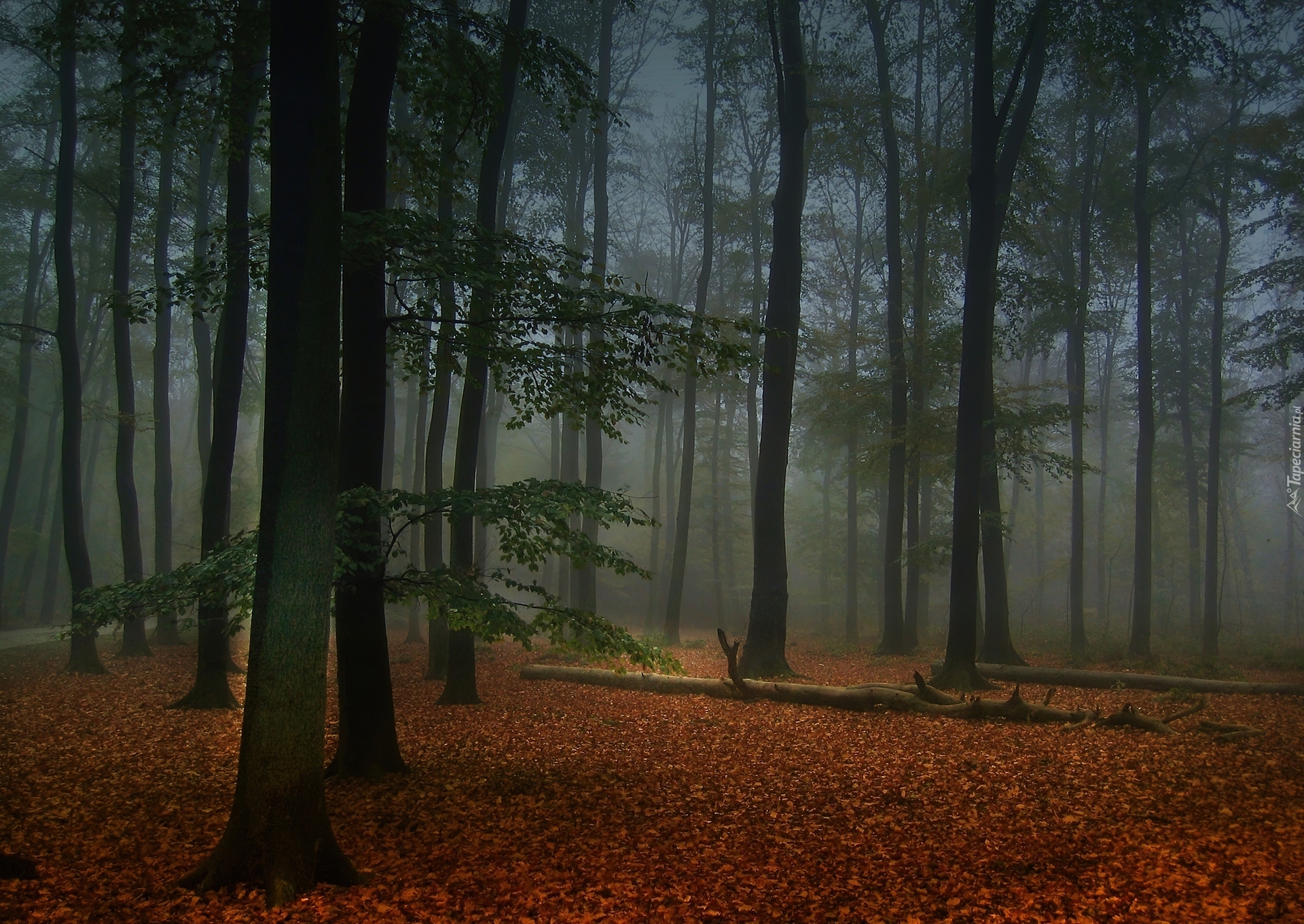 Edytor tapety: Las, Drzewa, Mgła