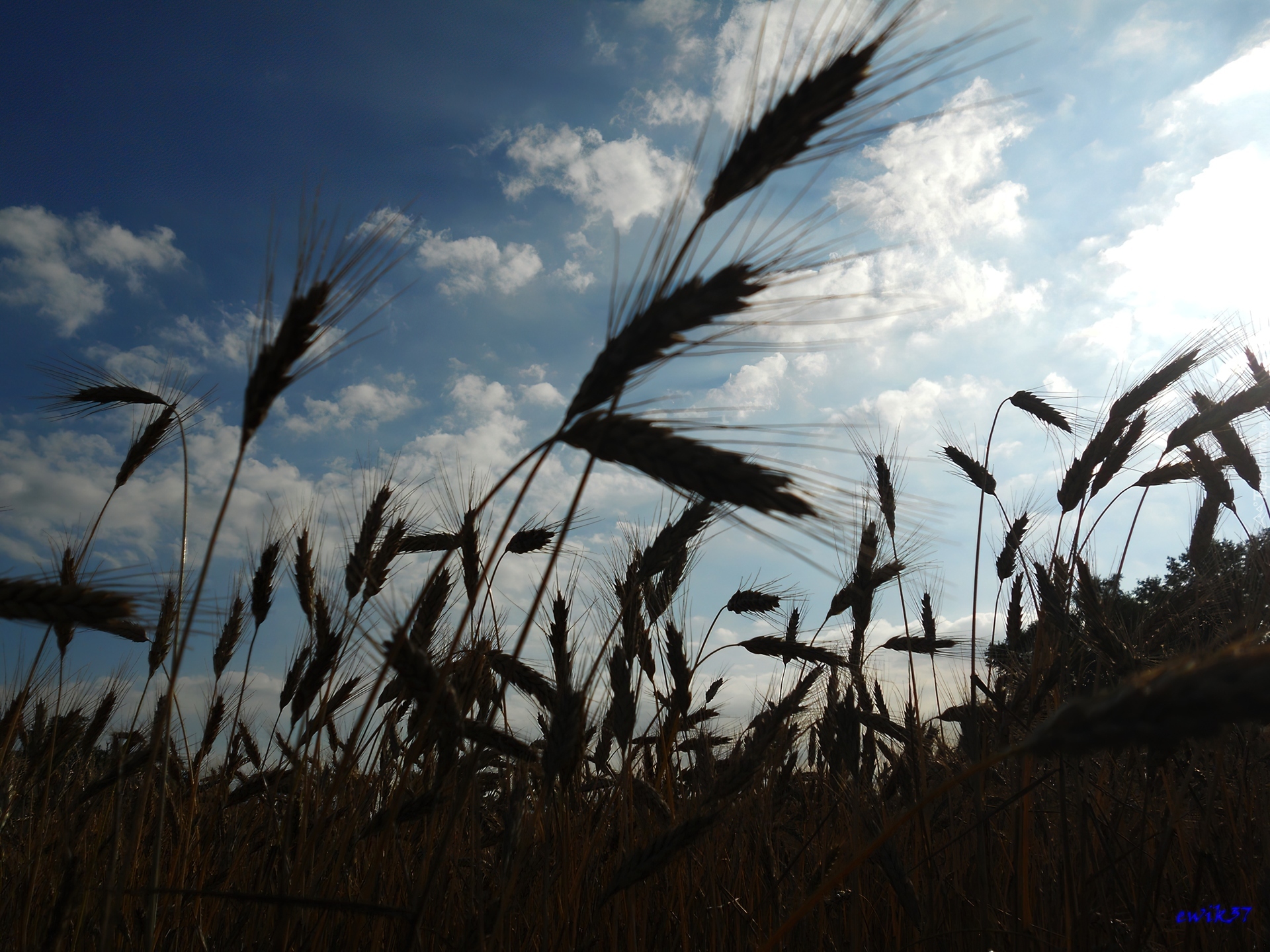 Edytor tapety: Kłosy, Zboża, Niebo, Chmury, Blask