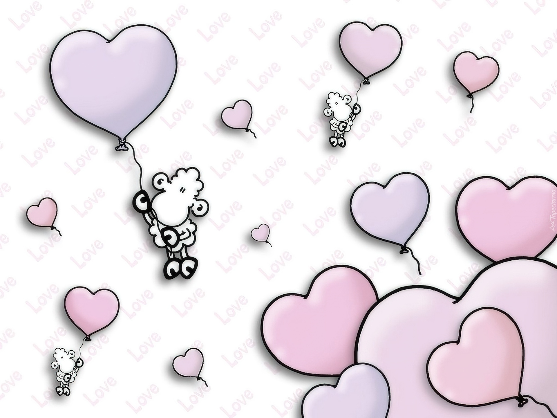 Edytor tapety: Walentynki,serduszka , owieczki