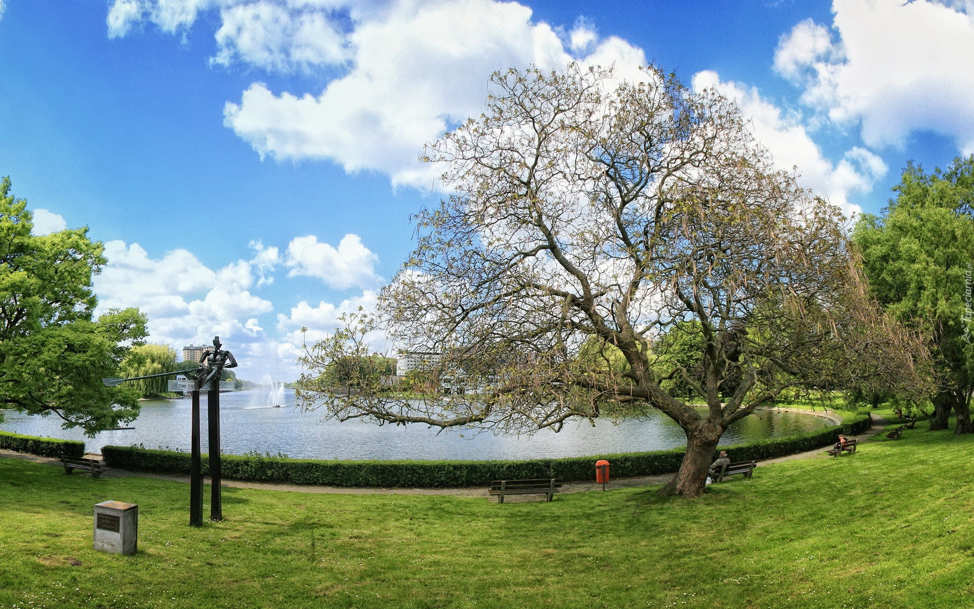 Edytor tapety: Park, Staw, Fontanna, Alejki, Chmury