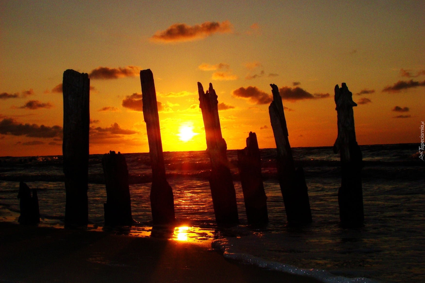 Edytor tapety: Zachód, Słońca, Morze, Falochron