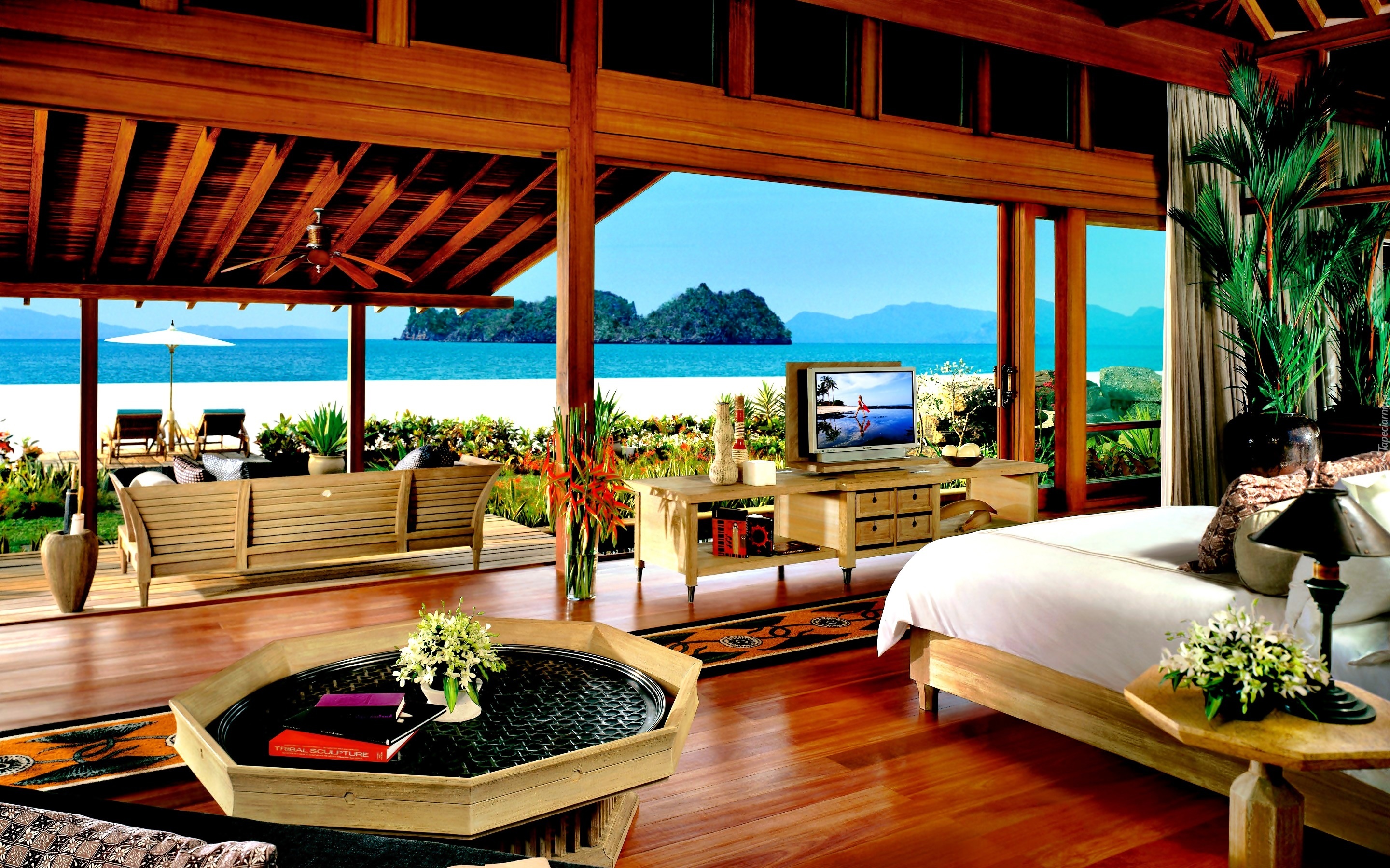 Edytor tapety: Dom, Willa, Sypialnia, Taras, Morze, Wyspa