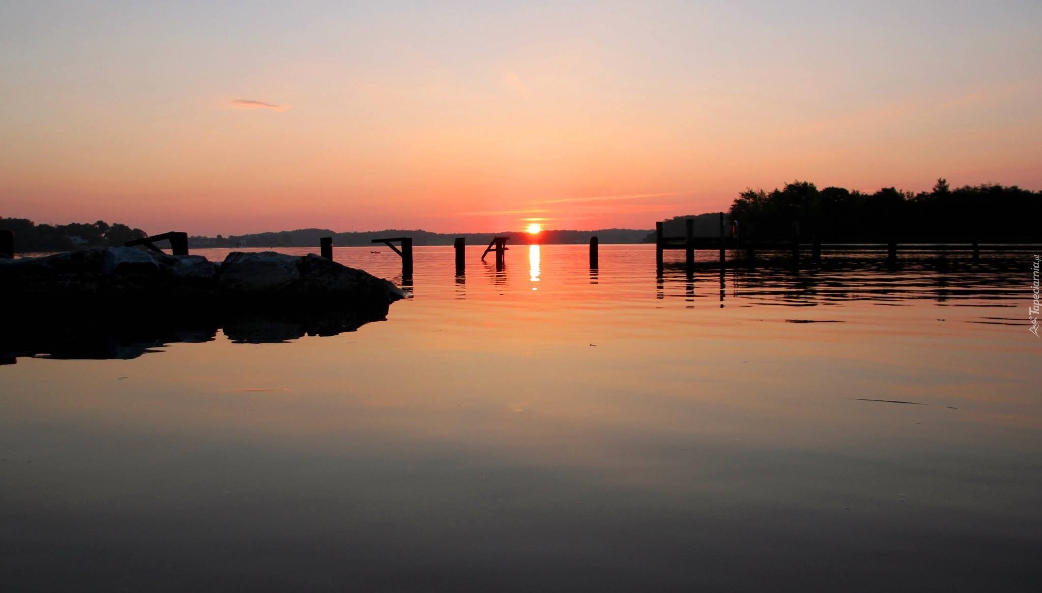 Edytor tapety: Jezioro, Molo, Zachód, Słońca