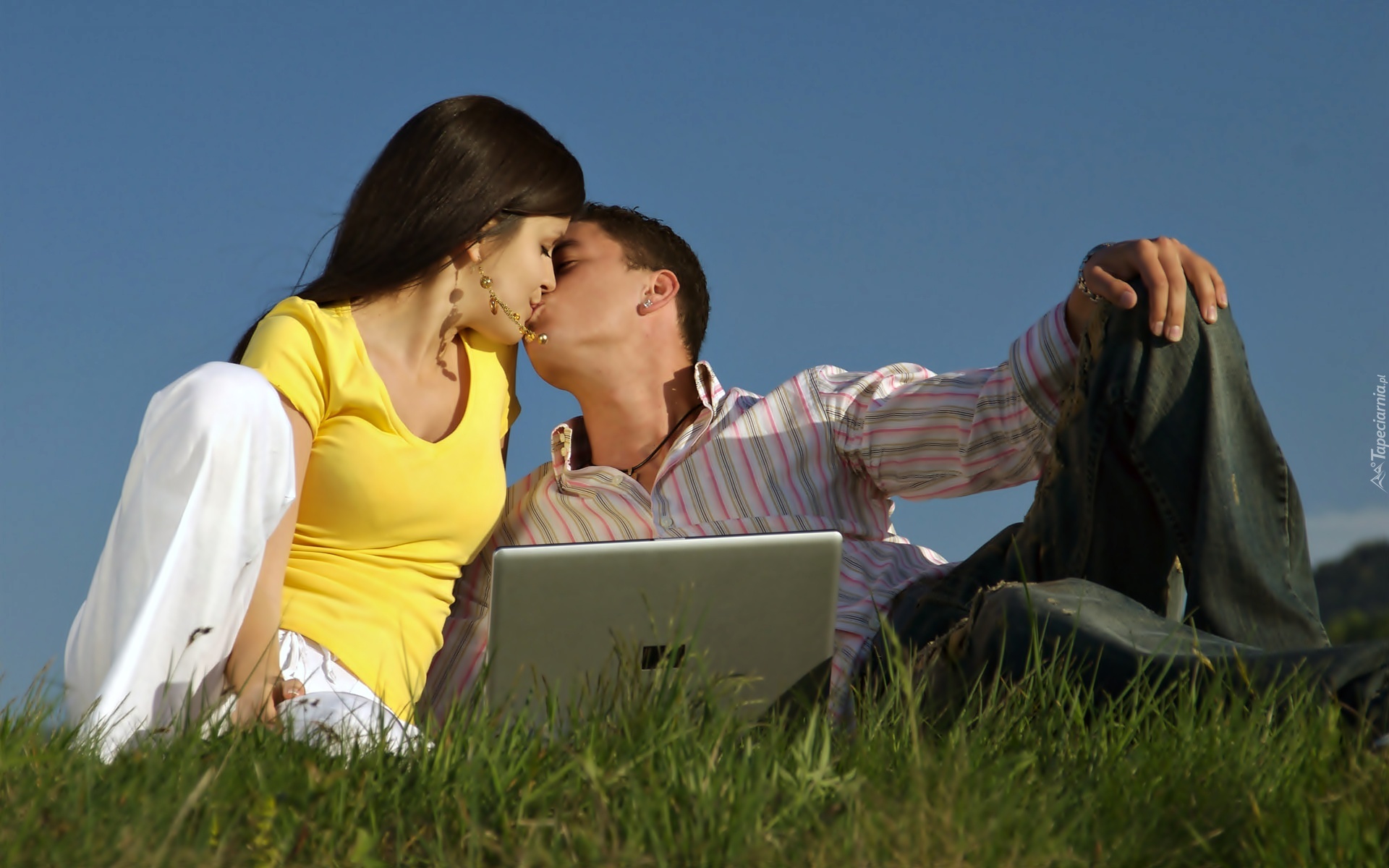 Edytor tapety: Dziewczyna, Chłopak, Pocałunek, Laptop