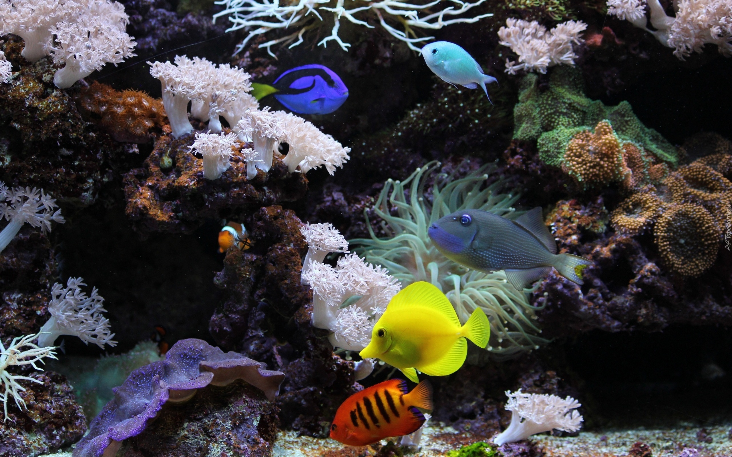 Edytor tapety: Kolorowe, Rybki, Roślinność, Skały, Podwodny, Świat