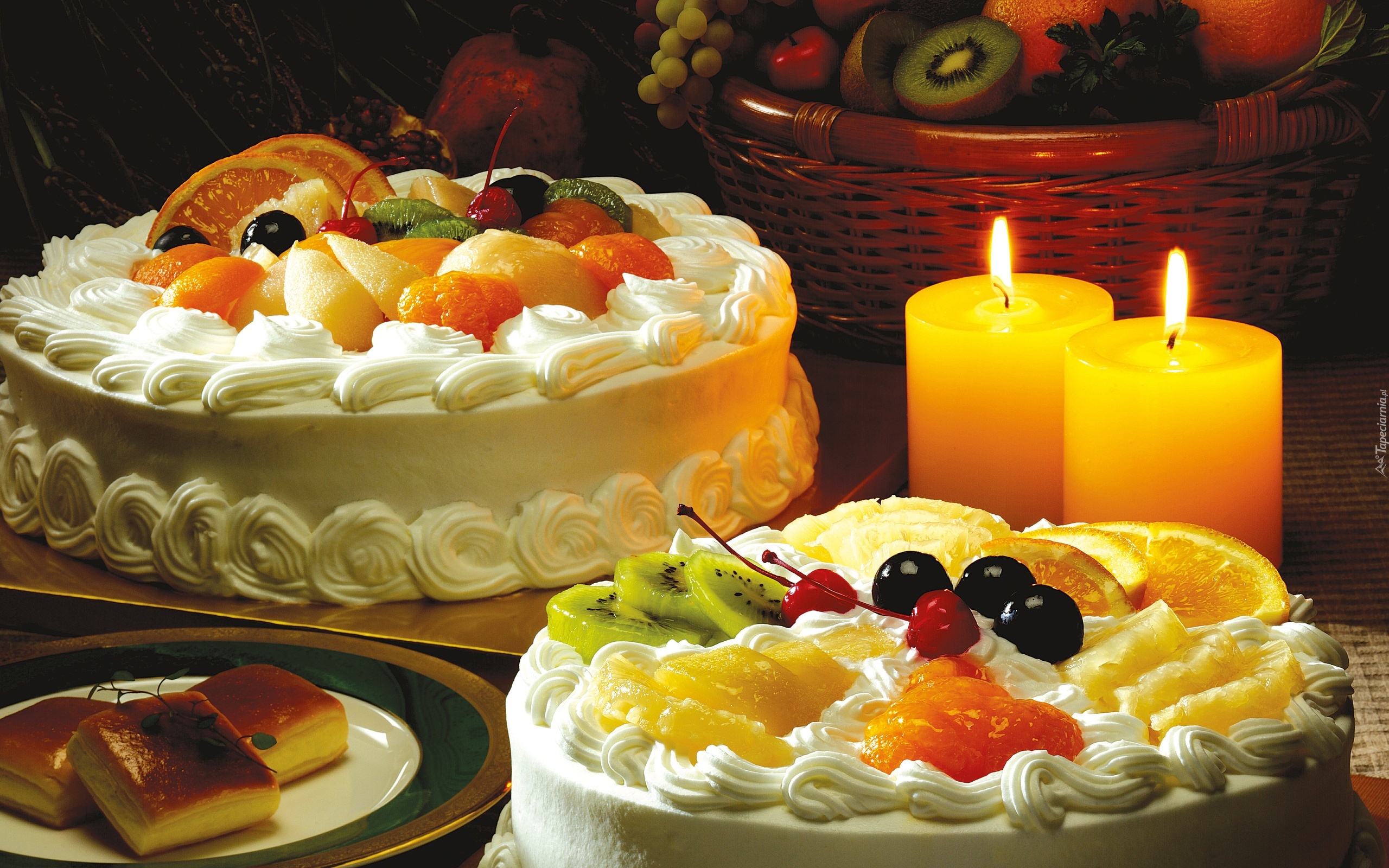 Edytor tapety: Torty, Świece, Owoce