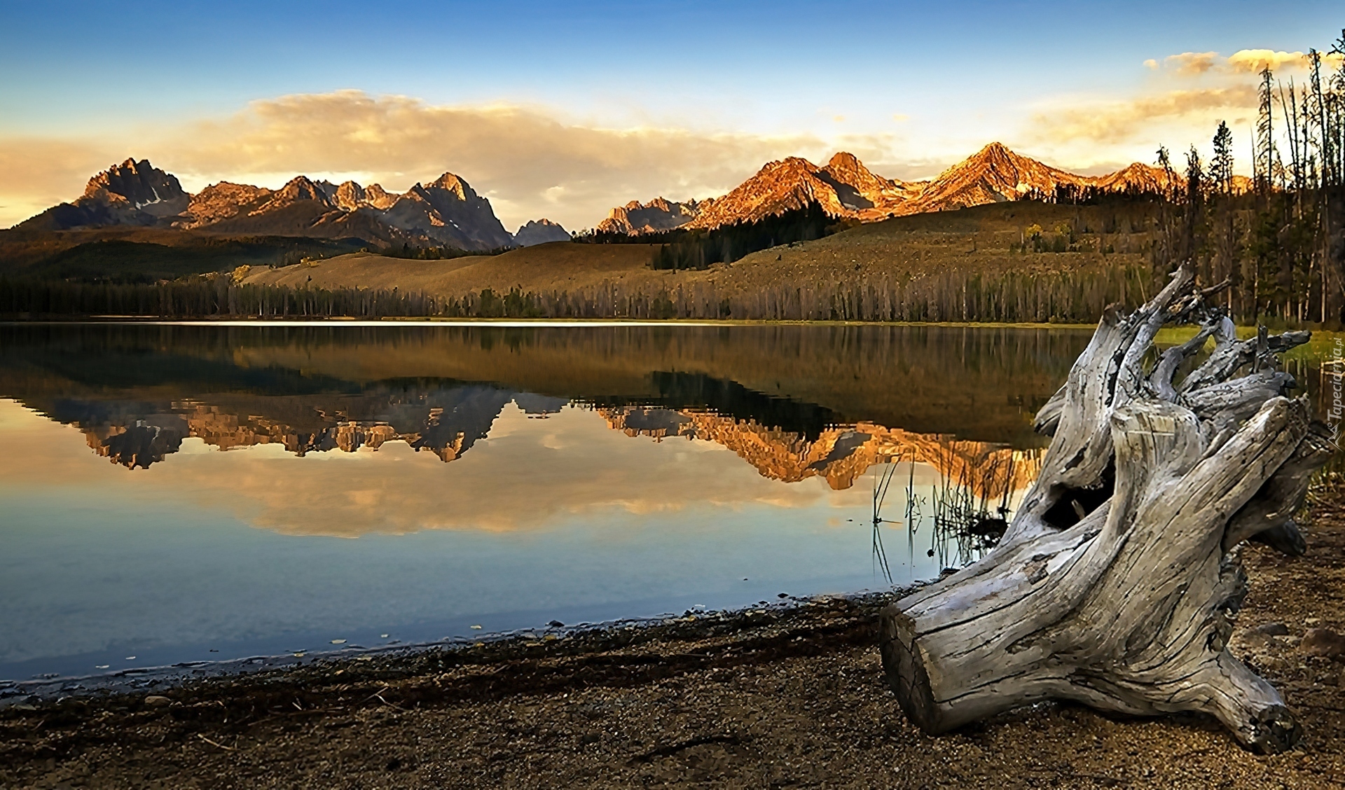 Edytor tapety: Zachód, Słońca, Góry, Jezioro, Karpa