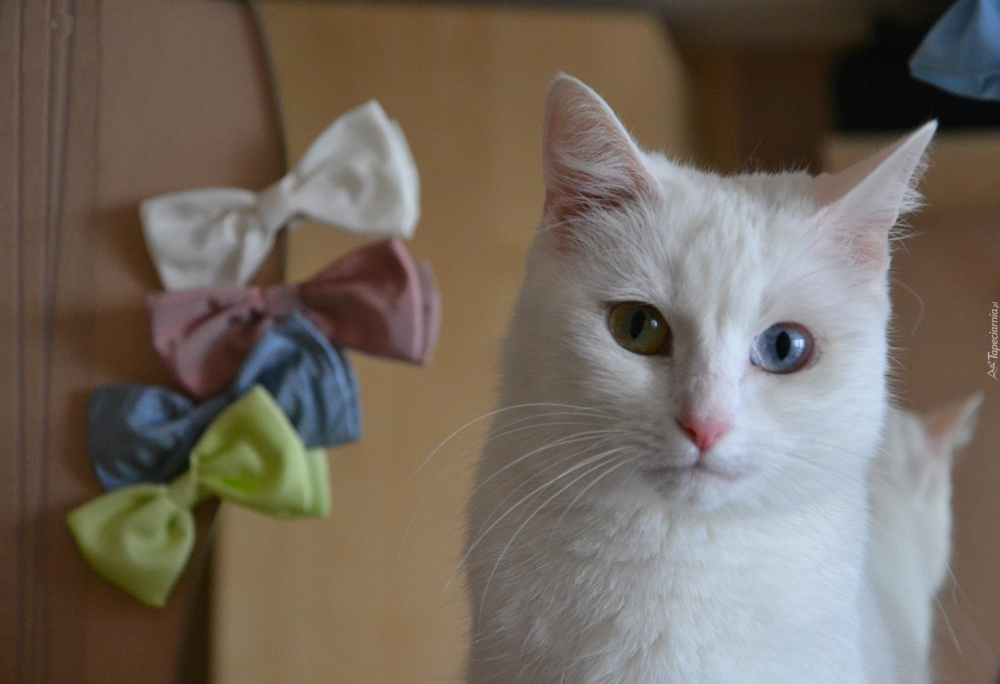 Edytor tapety: Biały, Kot, Kokardki