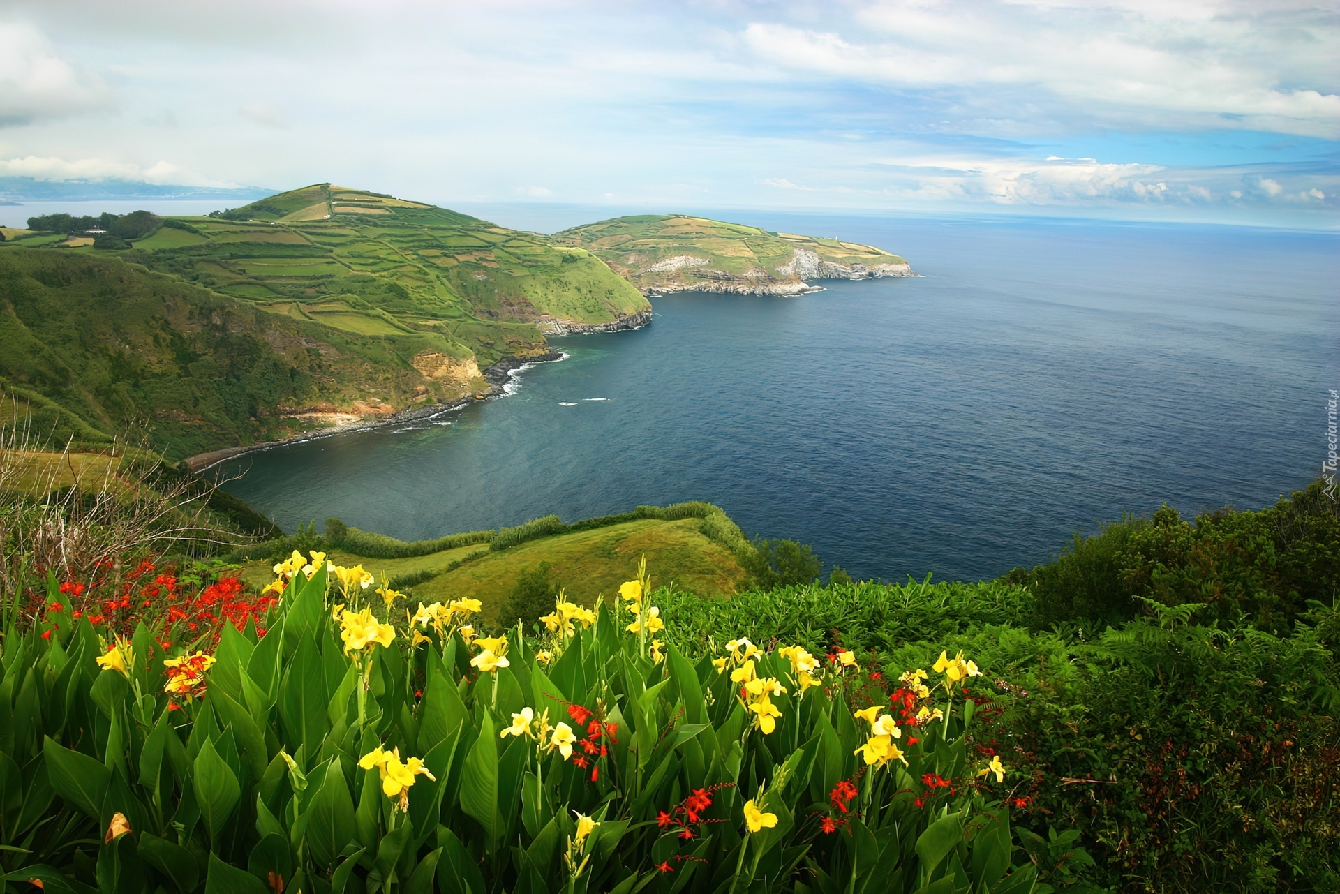 Edytor tapety: Morze, Wybrzeże, Kwiatki, Azory, Portugalia