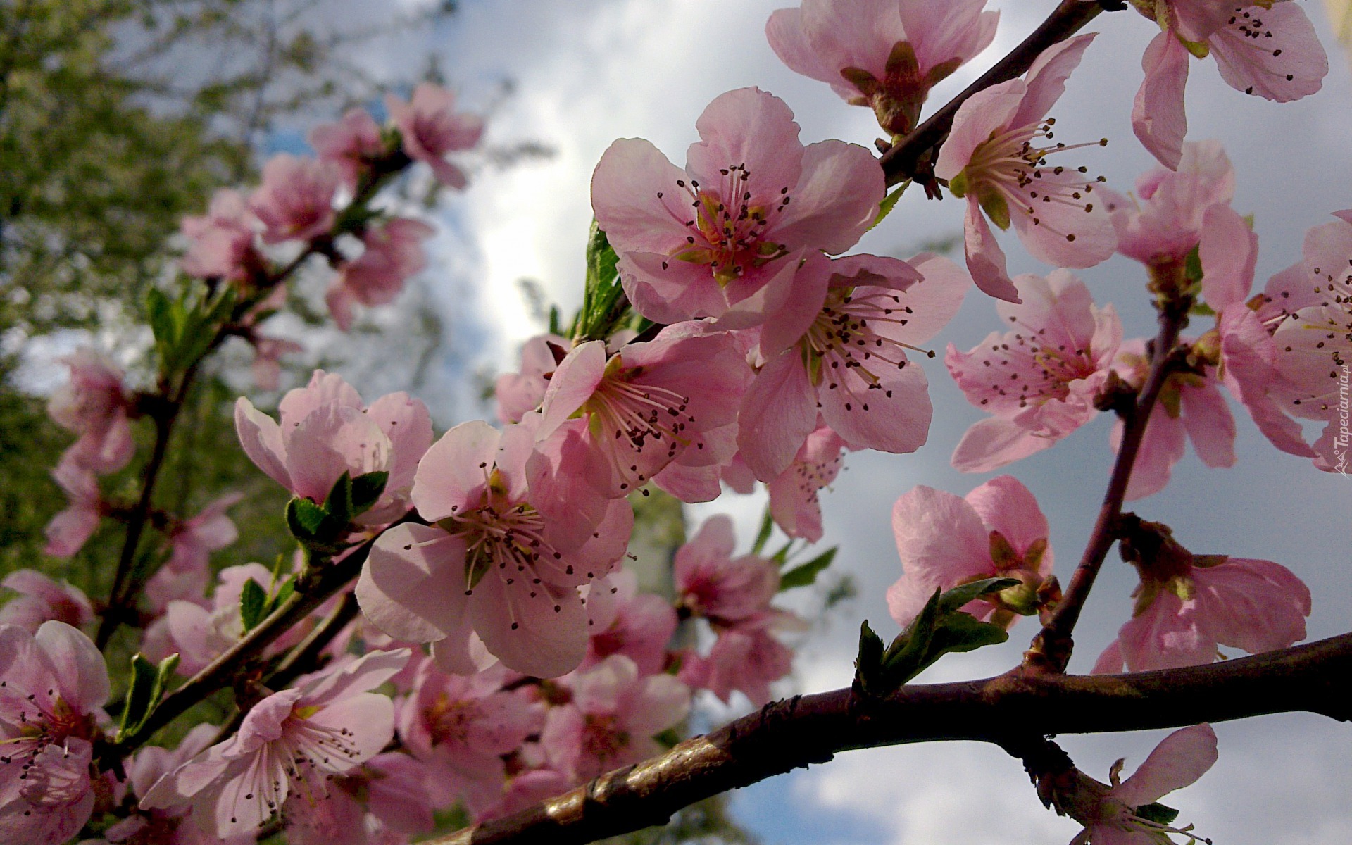 Edytor tapety: Gałązka, Kwitnącego, Drzewa, Różowe, Kwiaty