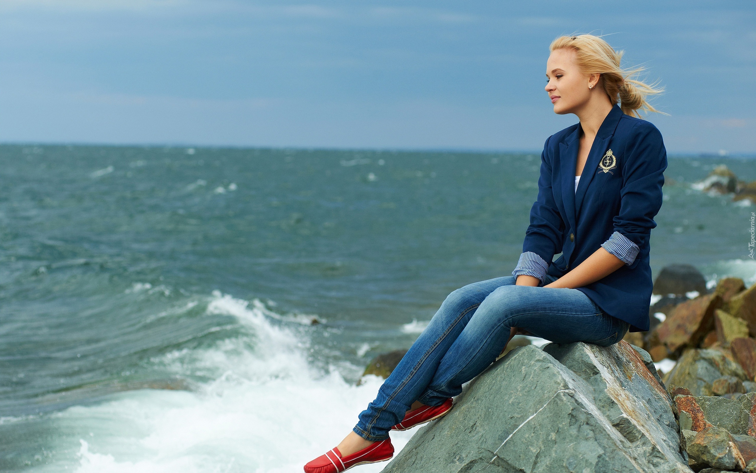 Edytor tapety: Kobieta, Blondynka, Morze