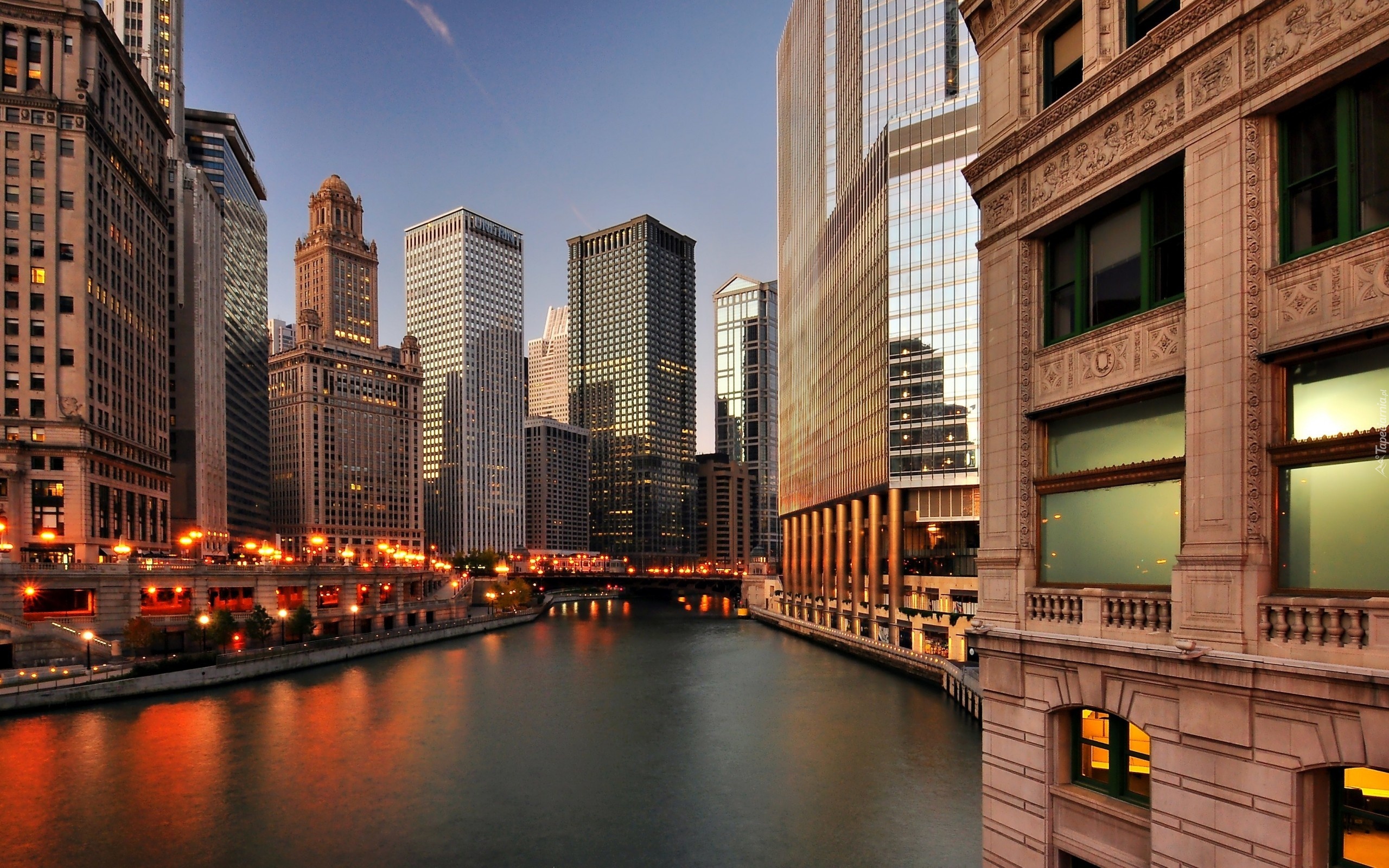 Edytor tapety: Chicago, USA, Wieżowce, Rzeka